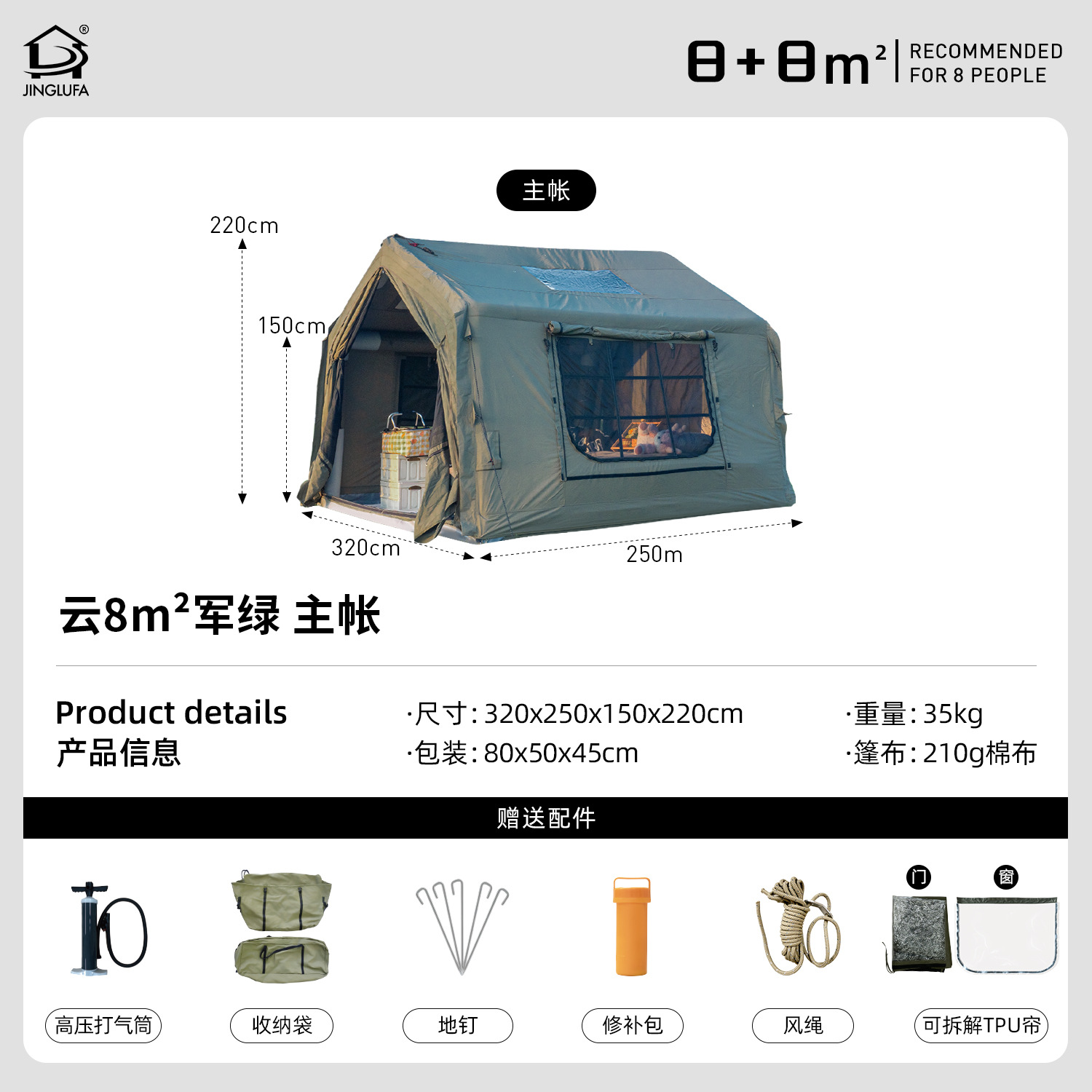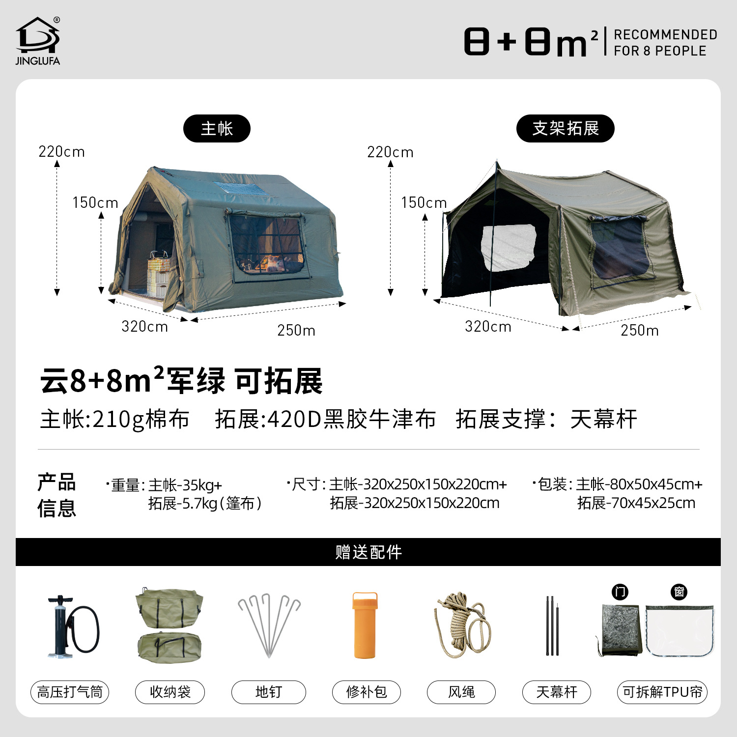• 【밀리터리 그린 8】 메인 텐트 + TPU 창