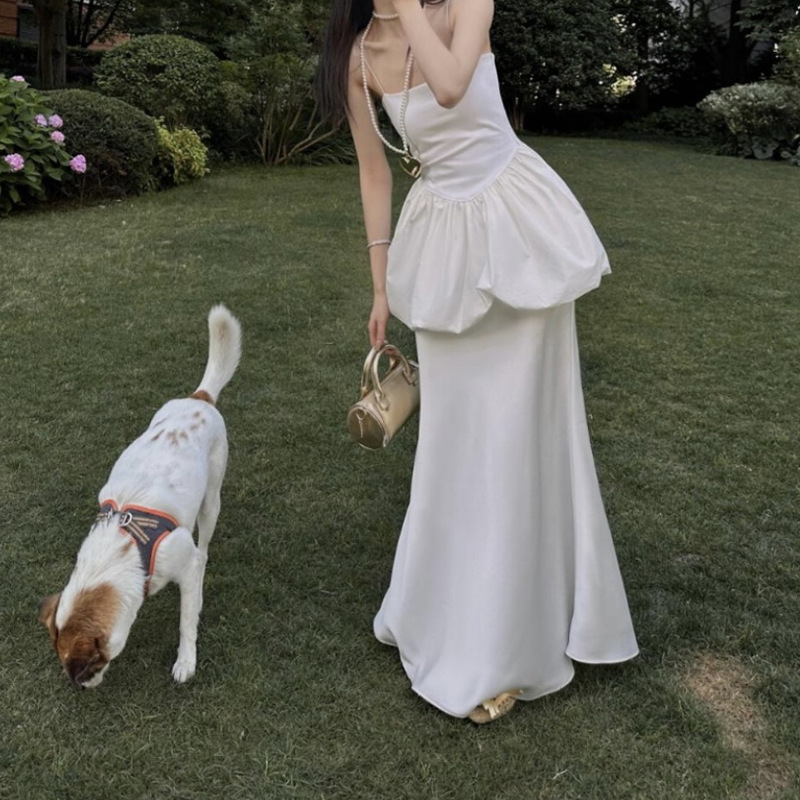 프렌치 스타일의 우아한 슬림핏 튜브탑 꽃봉오리 머메이드 스커트 세트 여성 2026 여름 신상 고급스러운 기품 있는 드레스스토어 가기