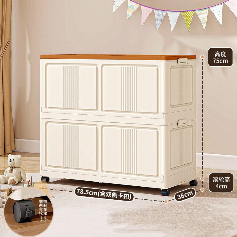 • 78.5cm 장난감 접이식 수납장 [크림+브라운] - 2단
