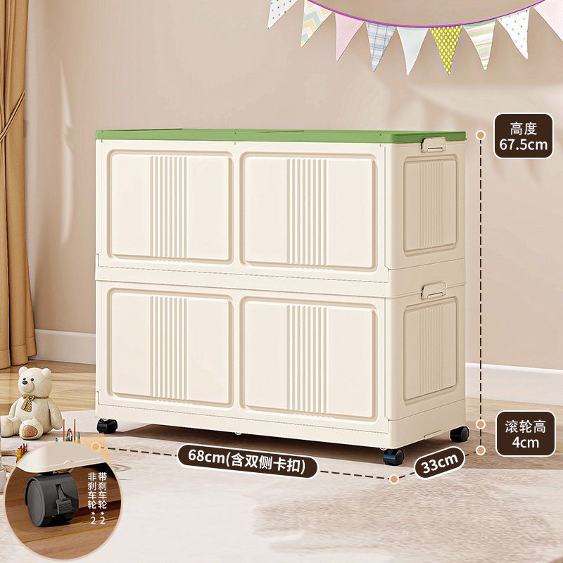 • 68cm 장난감 접이식 수납장 [크림+그린] - 2단