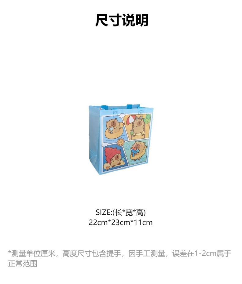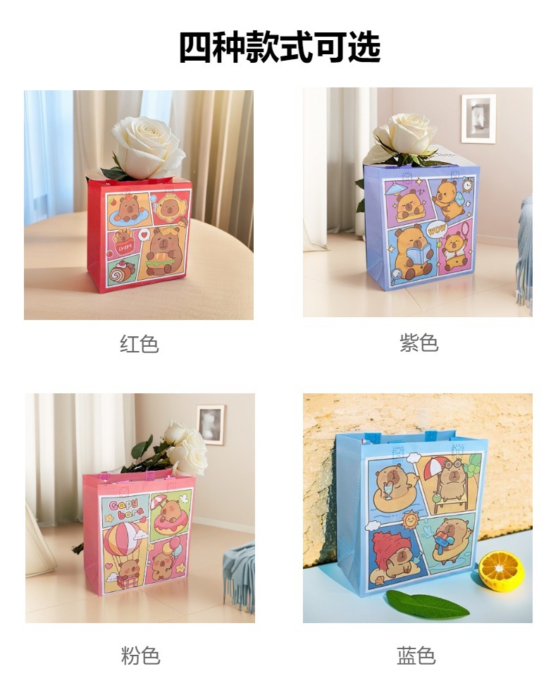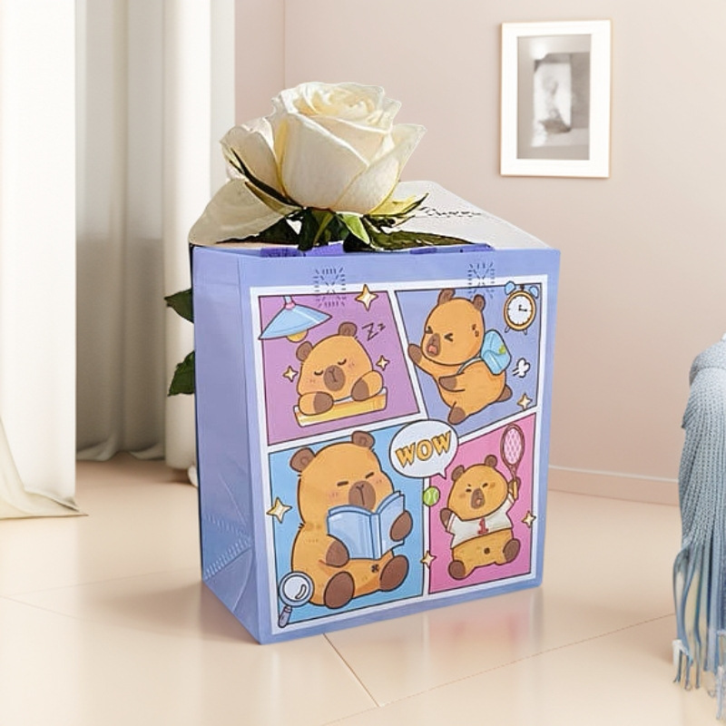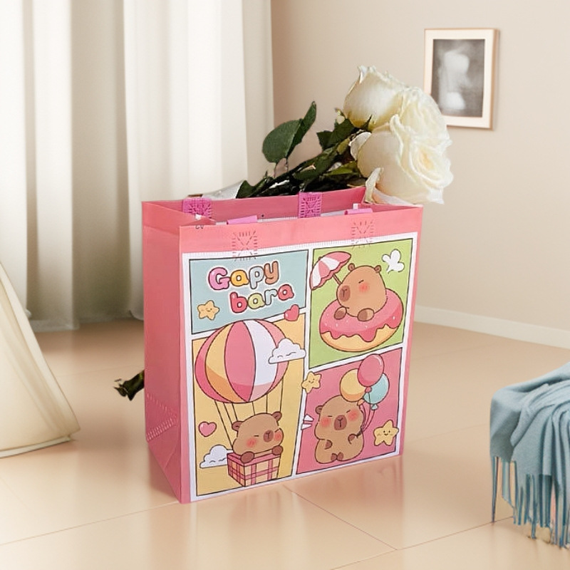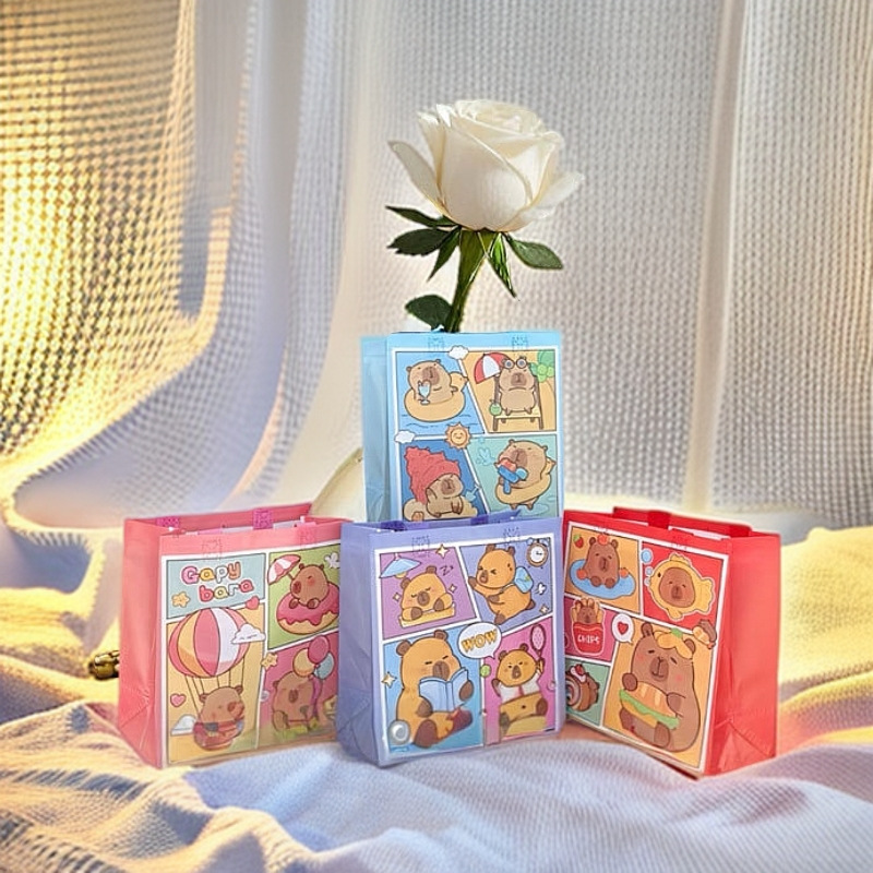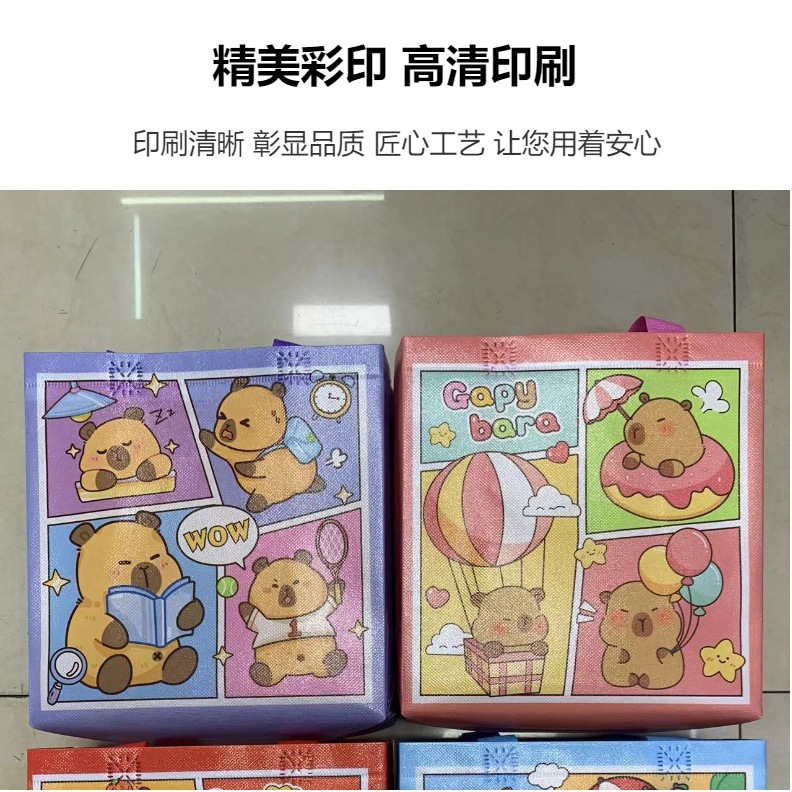 국경 간 카피바라 카피바라 어린이 만화 쇼핑 선물 휴일 부직포 방수 핸드백스토어 가기
