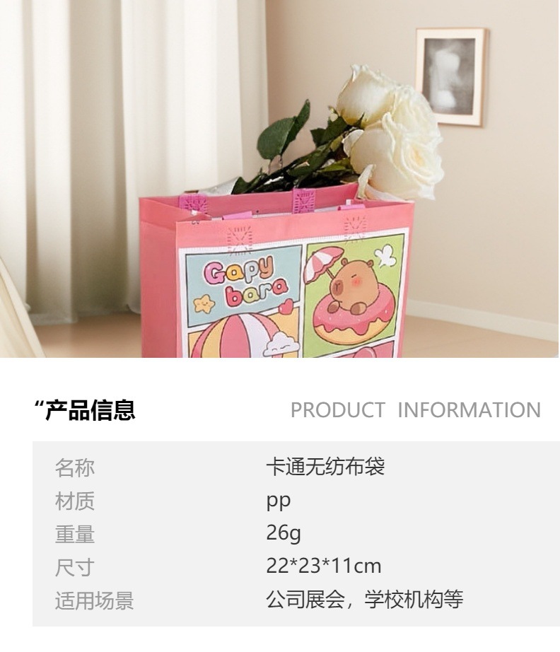 국경 간 카피바라 카피바라 어린이 만화 쇼핑 선물 휴일 부직포 방수 핸드백