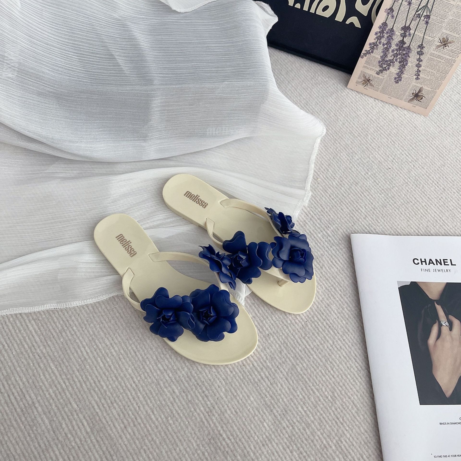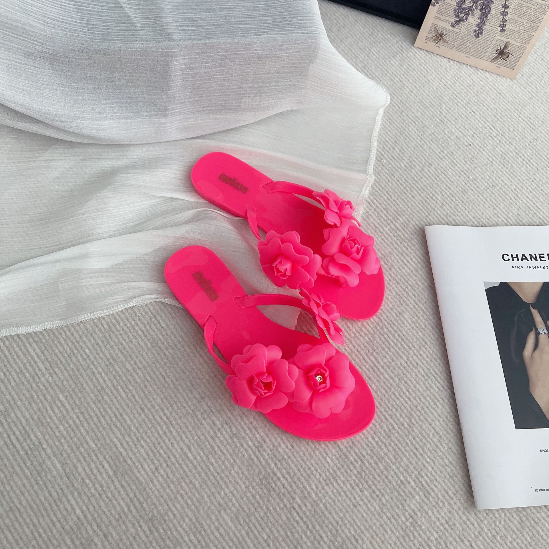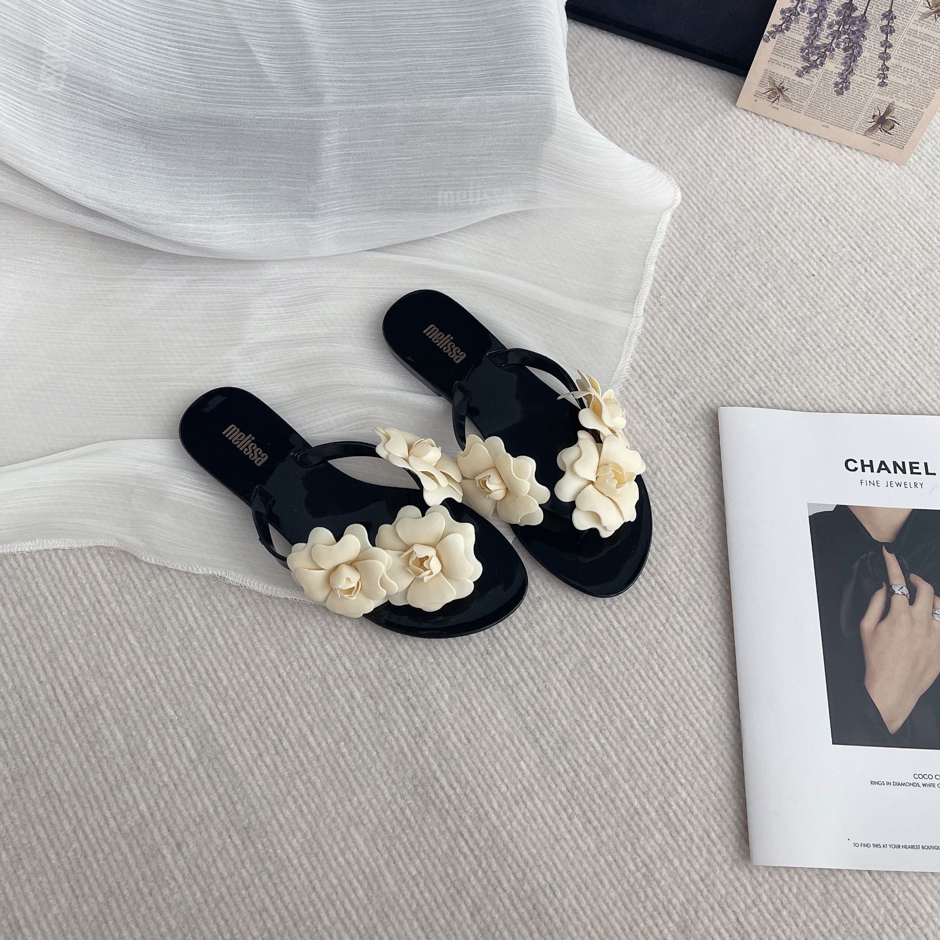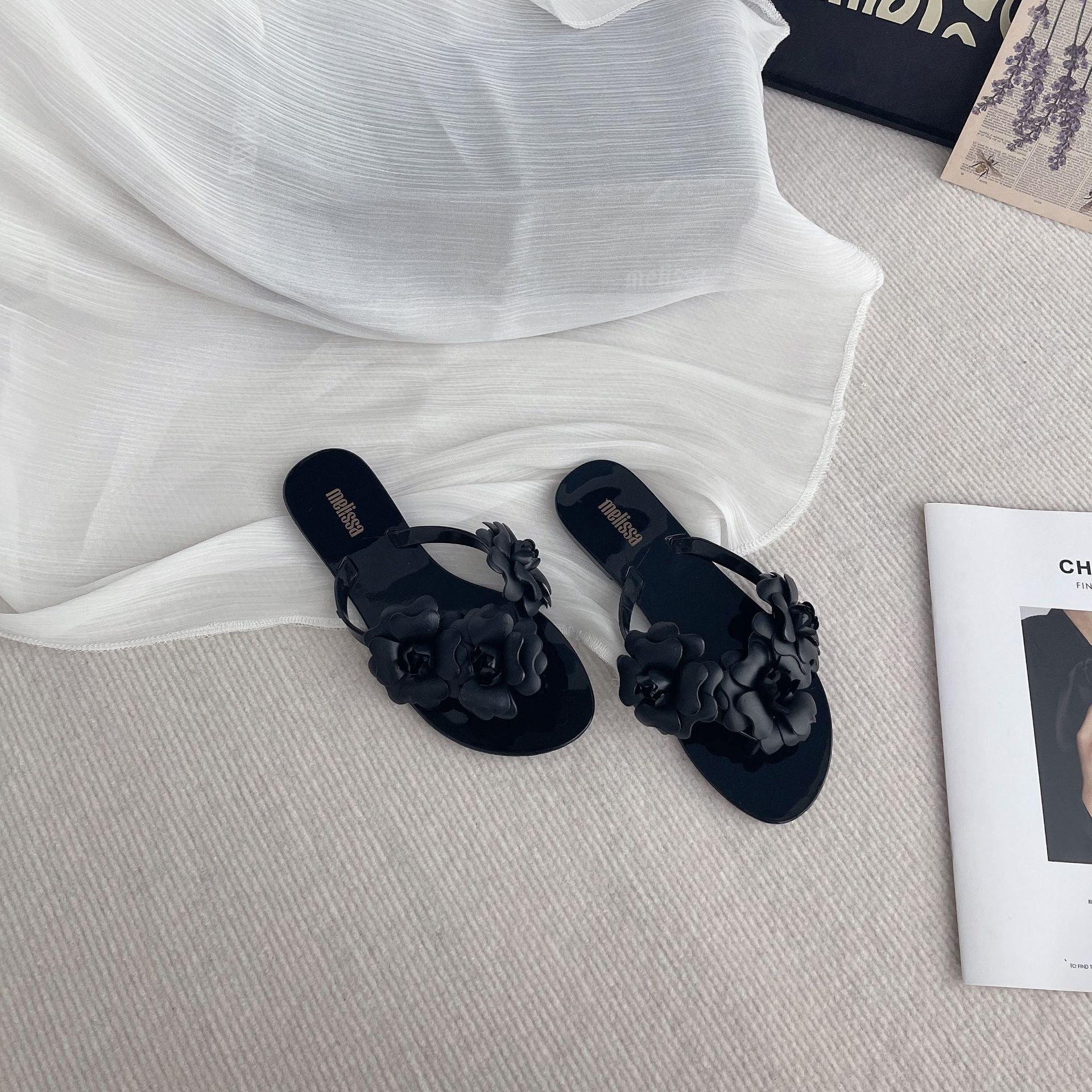 2025 여름 동백 슬리퍼 플랫 젤리 신발 여성 슬리퍼 작은 향기로운 달콤한 꽃 휴가 해변 신발