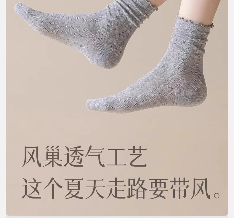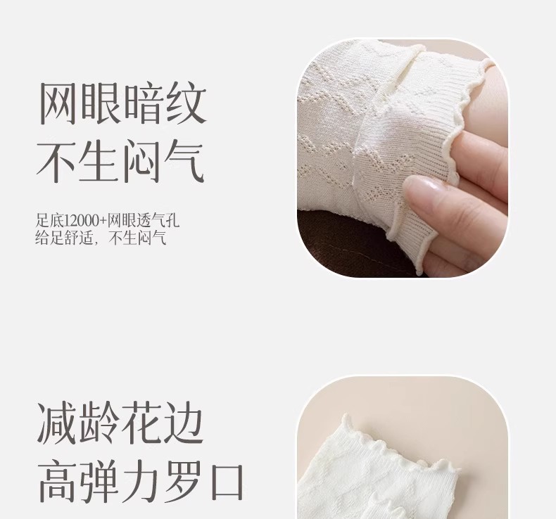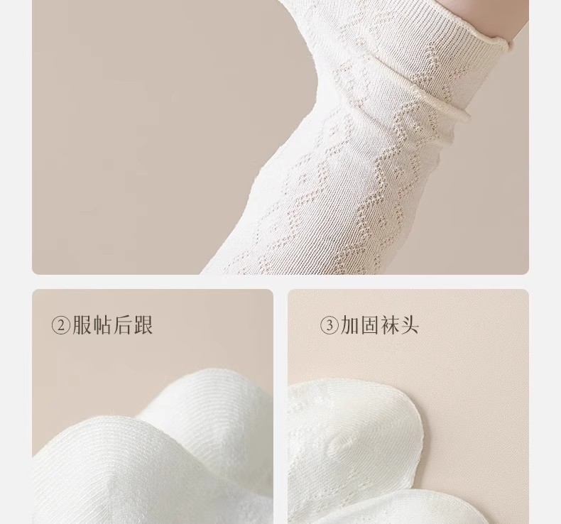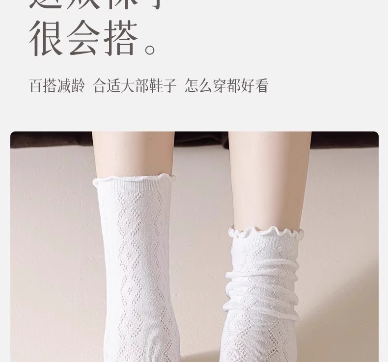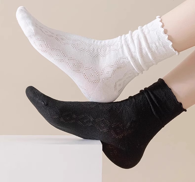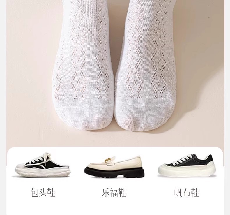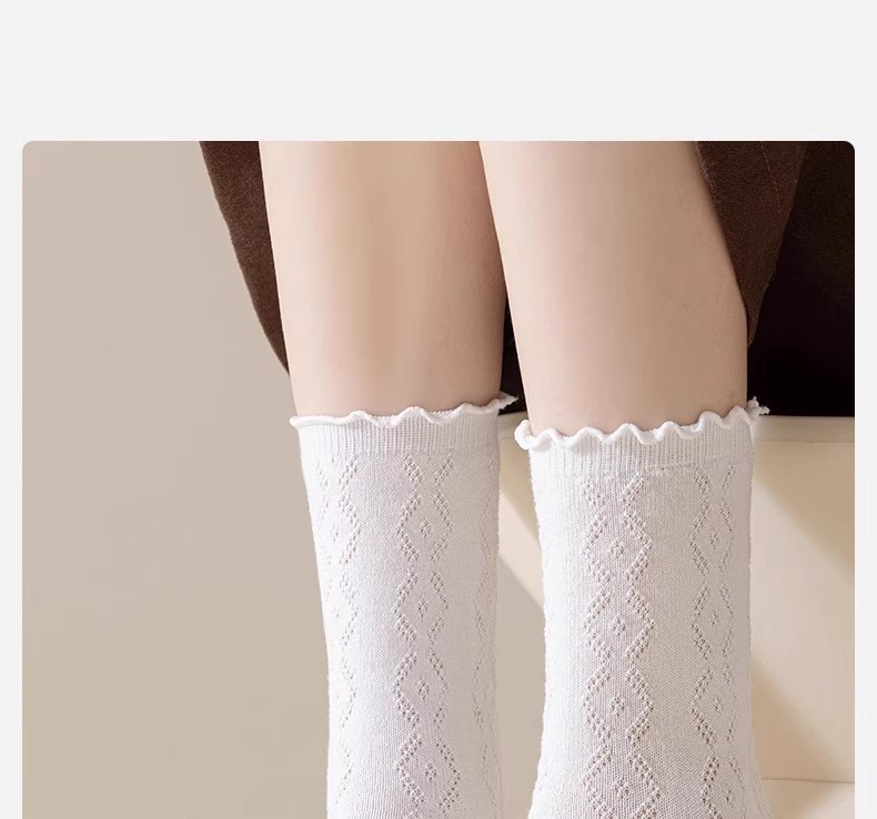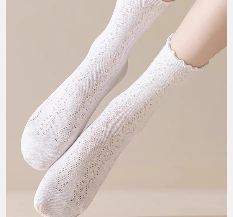 여성용 양말, 화이트 메쉬 통기성 중목 양말, 버켄스탁 슈즈와 함께 착용하는 여름 레이스 장양말, 패셔너블스토어 가기