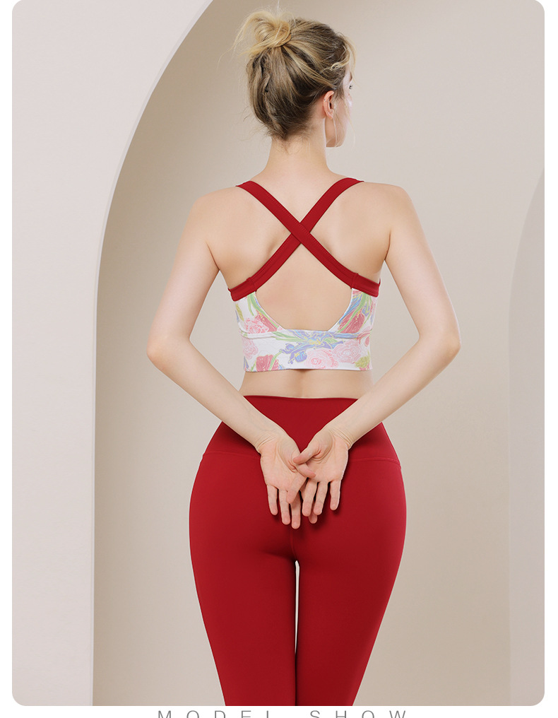 유럽과 미국의 대외 무역 국경 간 인기 요가 의류 세트 여성 조끼 아름다운 등 누드 느낌 스포츠 피트니스 훈련 의류 가슴 패드 포함