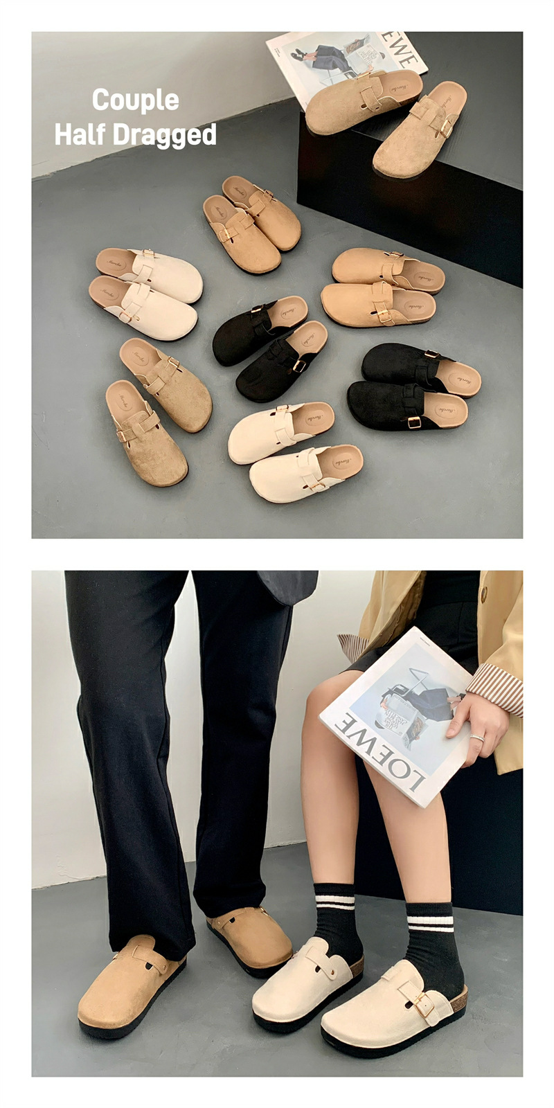 여성용 게으른 두꺼운 밑창 버켄스탁 신발 2025 봄, 가을 새로운 부드러운 밑창 버켄스탁 신발 복고풍 슬립온 하프 슬리퍼 트렌드스토어 가기