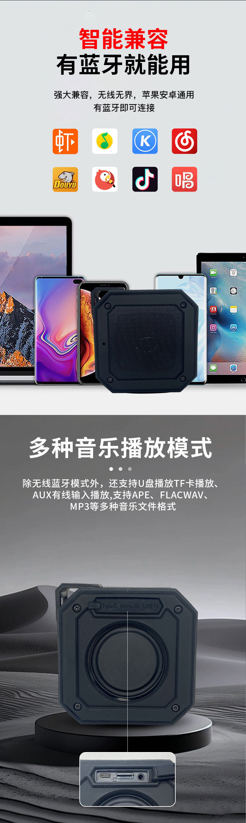 무선 카드 삽입형 블루투스 박스 휴대용 소형 강철 총 야외 홈 미니 스피커 7단계 방수 서브우퍼 스피커스토어 가기