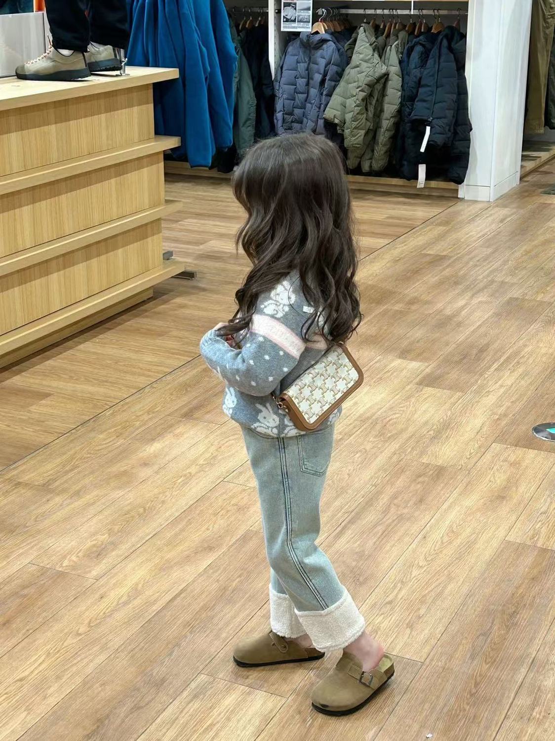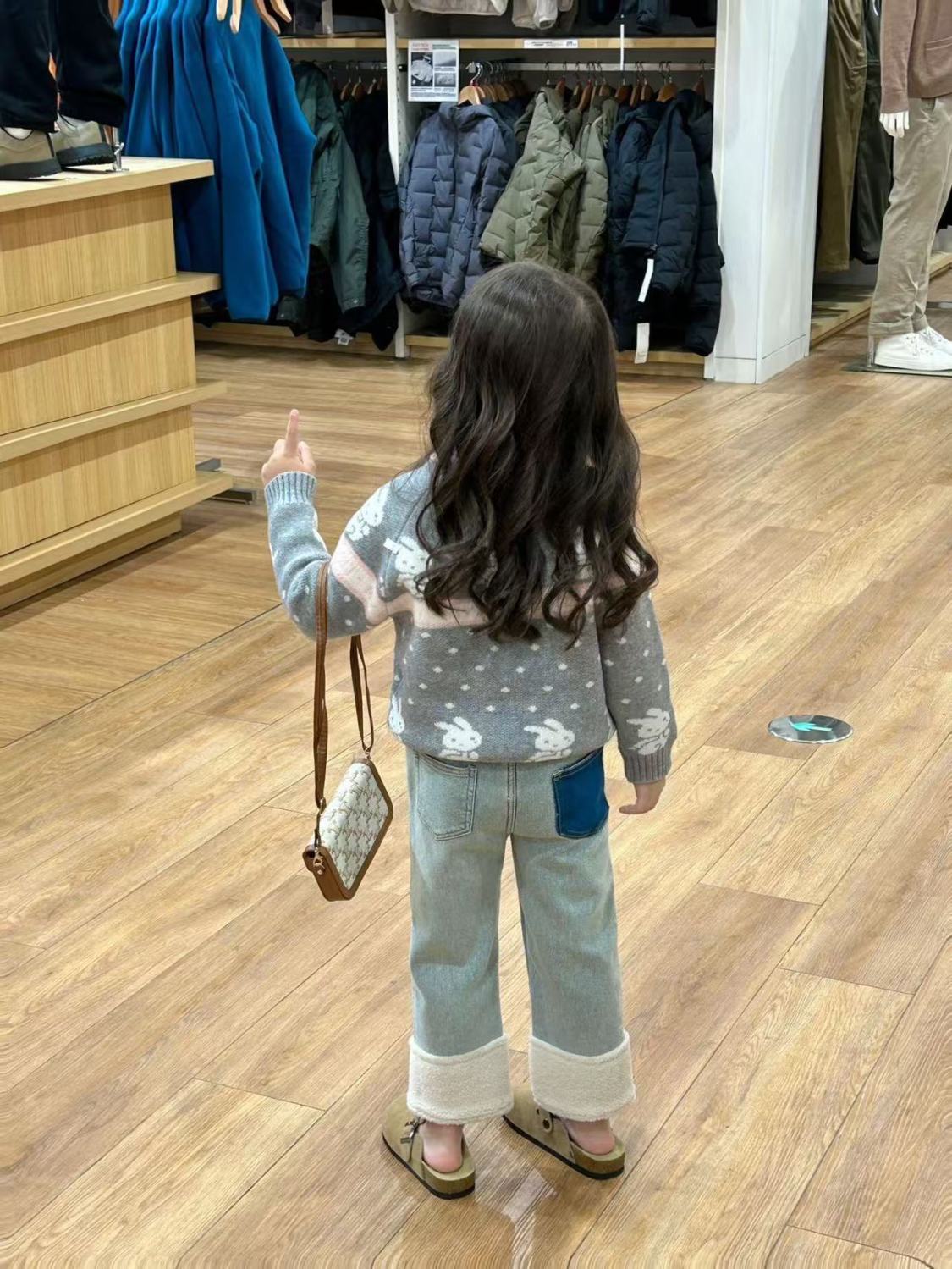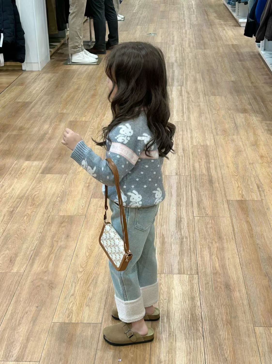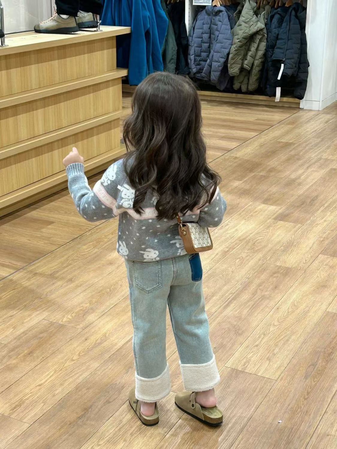 여아 바지 플러스 벨벳 청바지 2024 새로운 스타일 가을 겨울 스타일 스트레이트 커프 스플라이스 모피 발목 캐주얼 바지스토어 가기