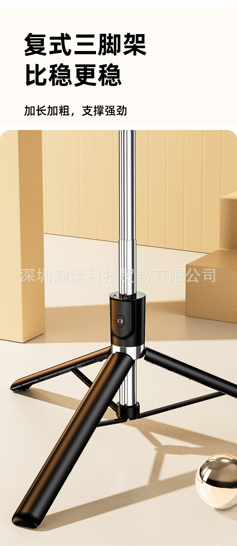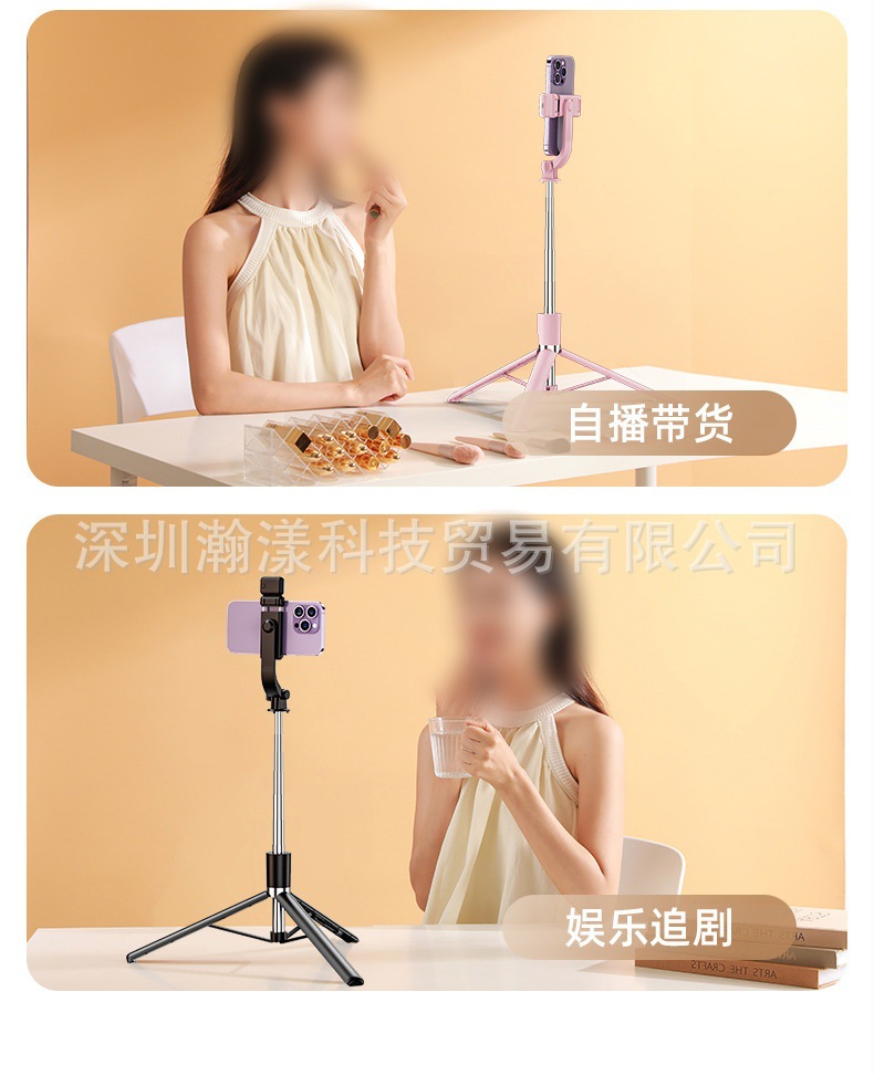 R1L 휴대폰 셀카봉 연장형 1.7m 블루투스 뷰티라이트 원격제어 라이브 방송 데스크탑 삼각대 세로촬영