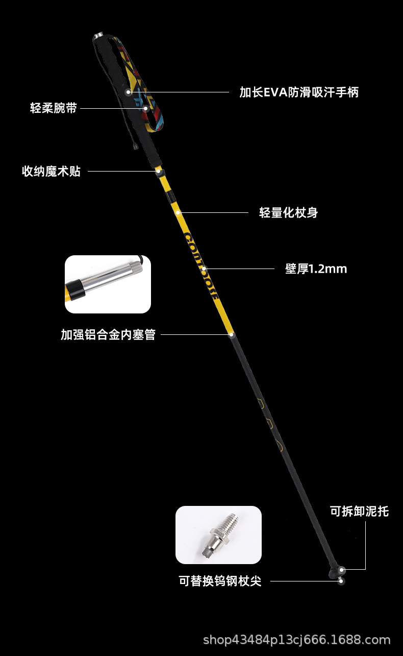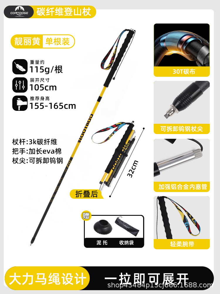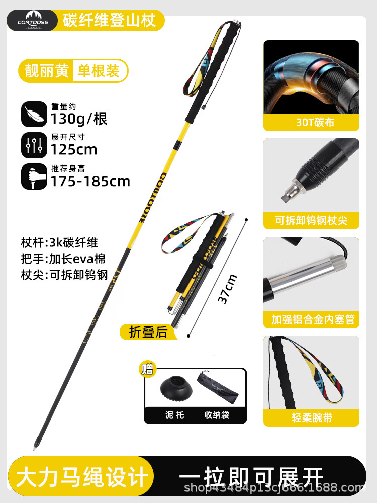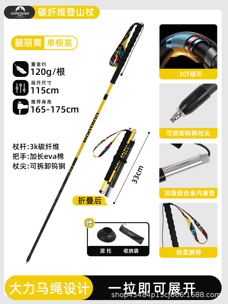 【공장 도매】 야외 전문 등산 스틱 크로스 컨트리 러닝 스틱 탄소 섬유 접이식 목발 등산 장비스토어 가기