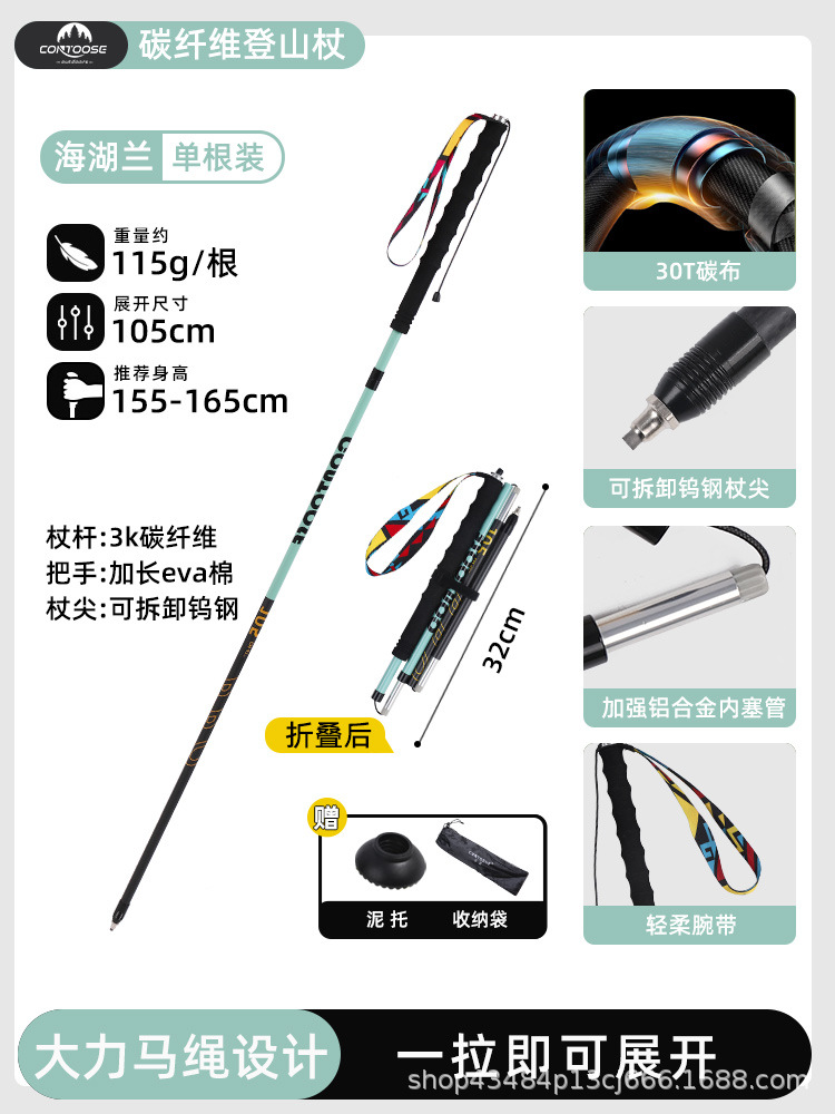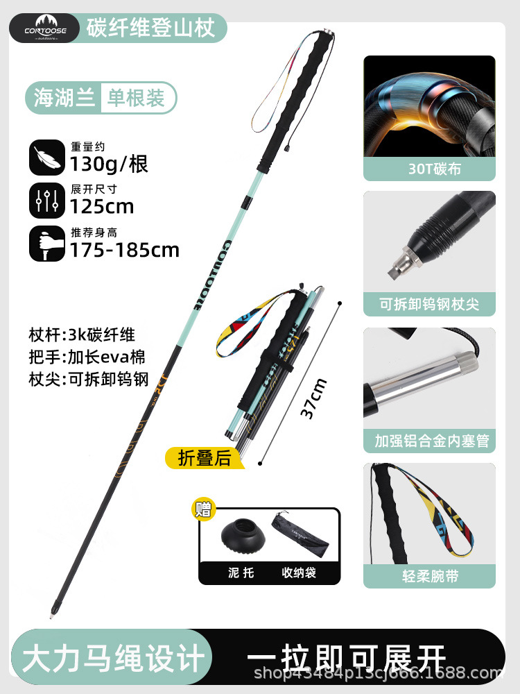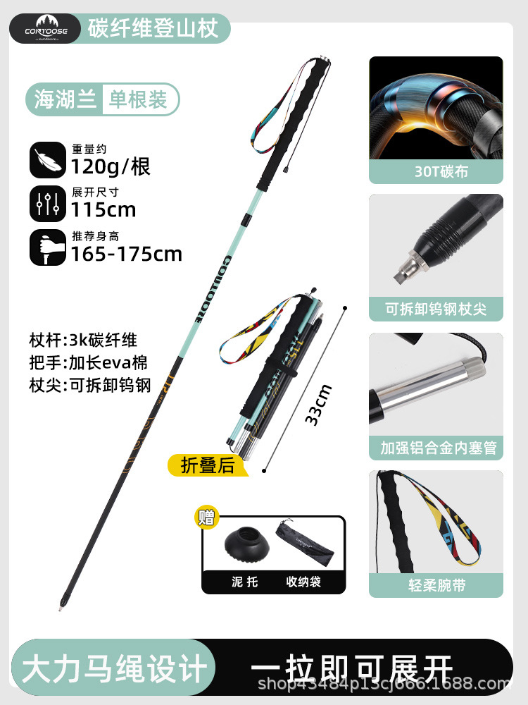 【공장 도매】 야외 전문 등산 스틱 크로스 컨트리 러닝 스틱 탄소 섬유 접이식 목발 등산 장비