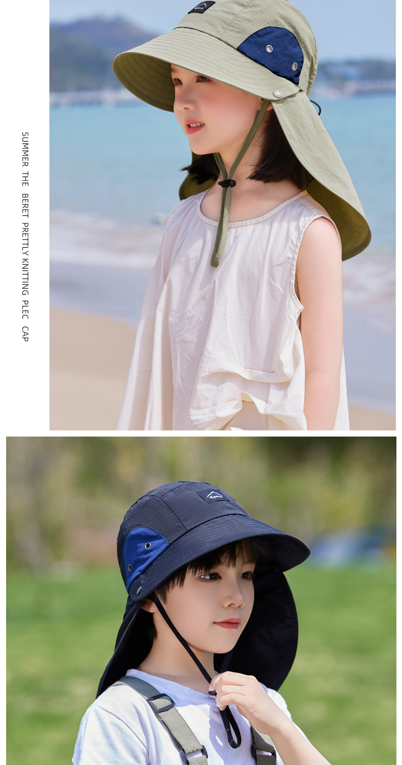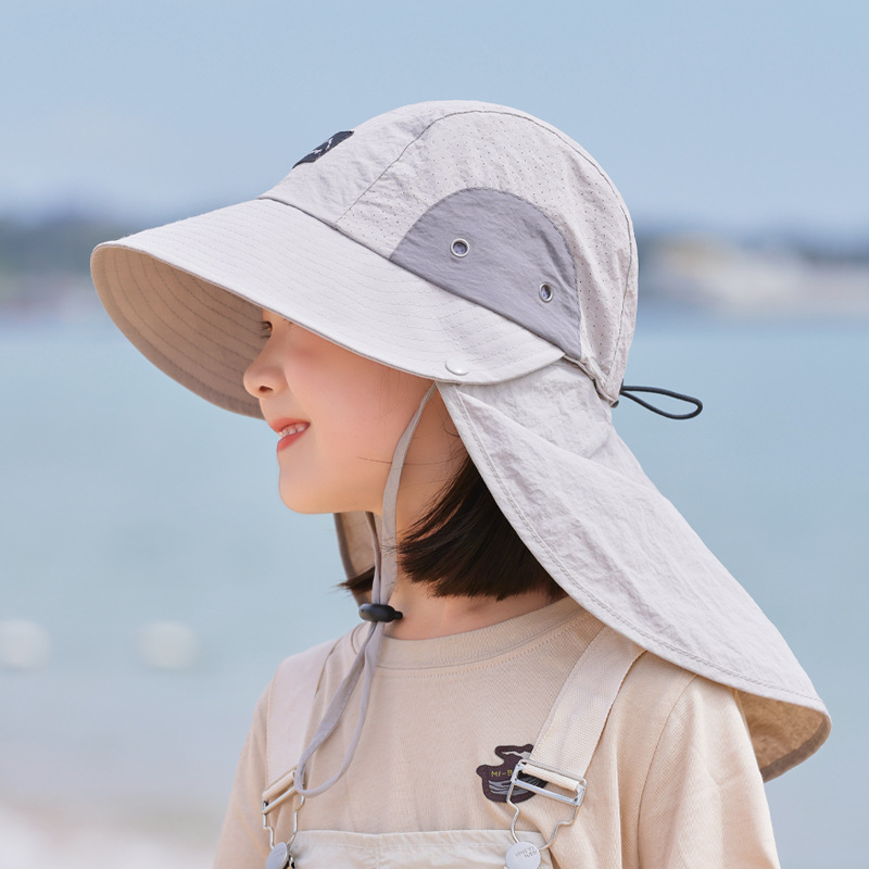 여름 어린이 모자 소년과 소녀 태양 보호 태양 모자 대형 목도리 목 보호 태양 모자 빠른 건조 방수 어부 모자