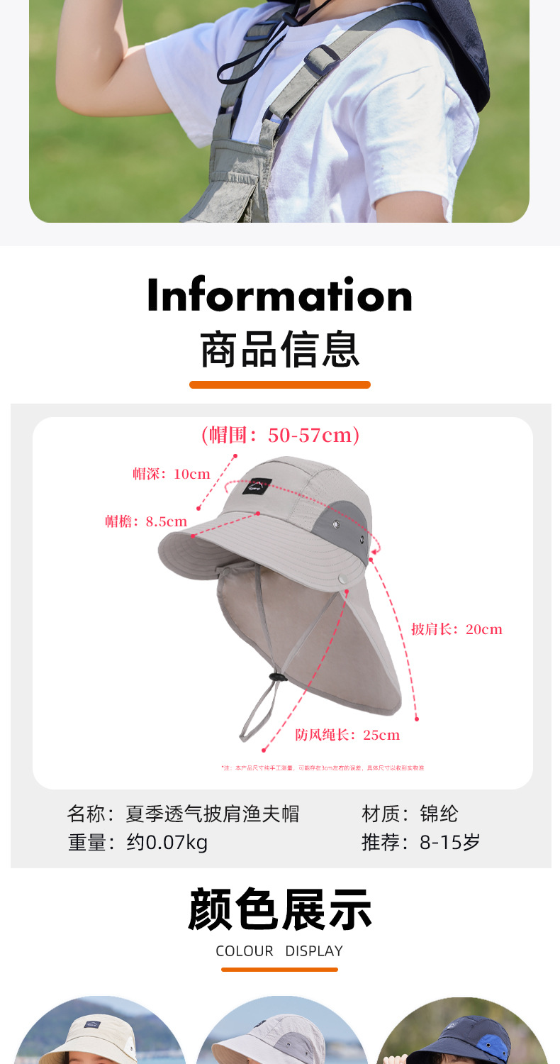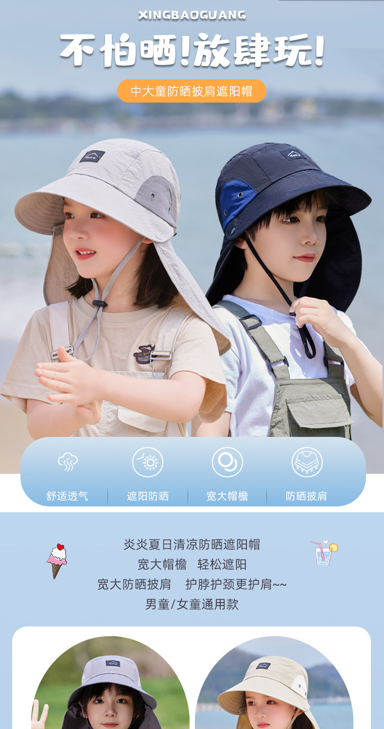 여름 어린이 모자 소년과 소녀 태양 보호 태양 모자 대형 목도리 목 보호 태양 모자 빠른 건조 방수 어부 모자스토어 가기