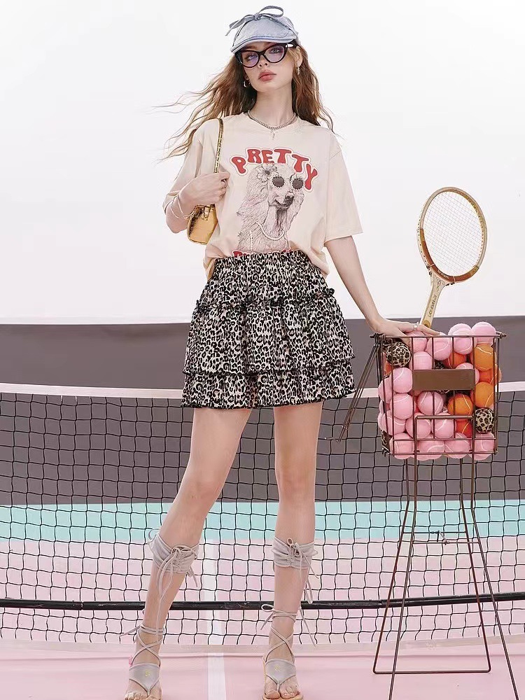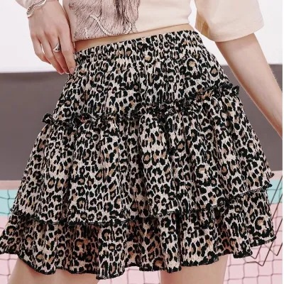 여성을위한 하이 웨이스트 a 라인 레오파드 프린트 스커트 2025 여름 패션 섹시한 작은 슬림 케이크 스커트 짧은 스커트 유행