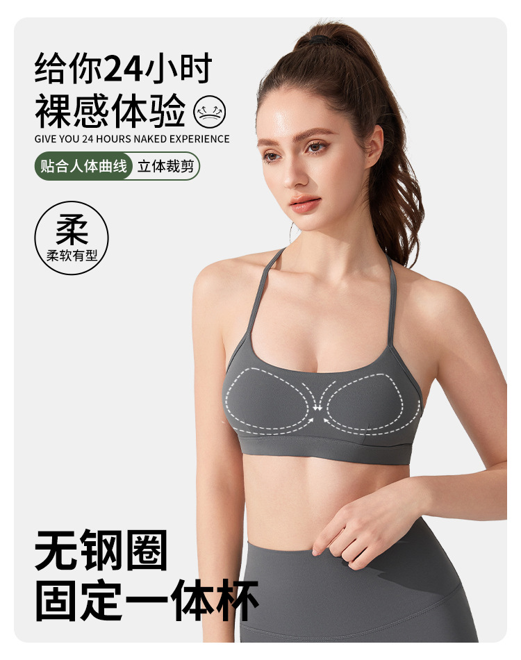 스포츠 속옷 여성의 얇은 스트랩 크로스 뷰티 백 충격 방지 푸시 업 요가 브라 필라테스 러닝 피트니스 요가 슬링