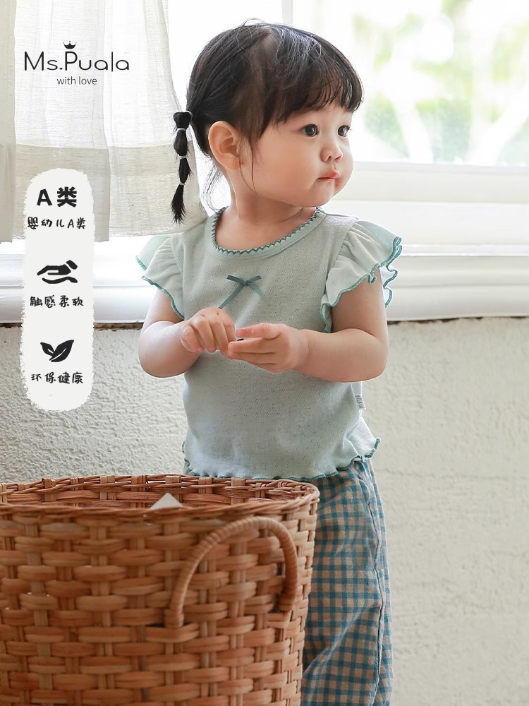 여아용 얇은 반팔 티셔츠 여름옷 2026년 신상 아기 여름옷 세련되고 트렌디한 아동용 통기성 좋은 상의스토어 가기