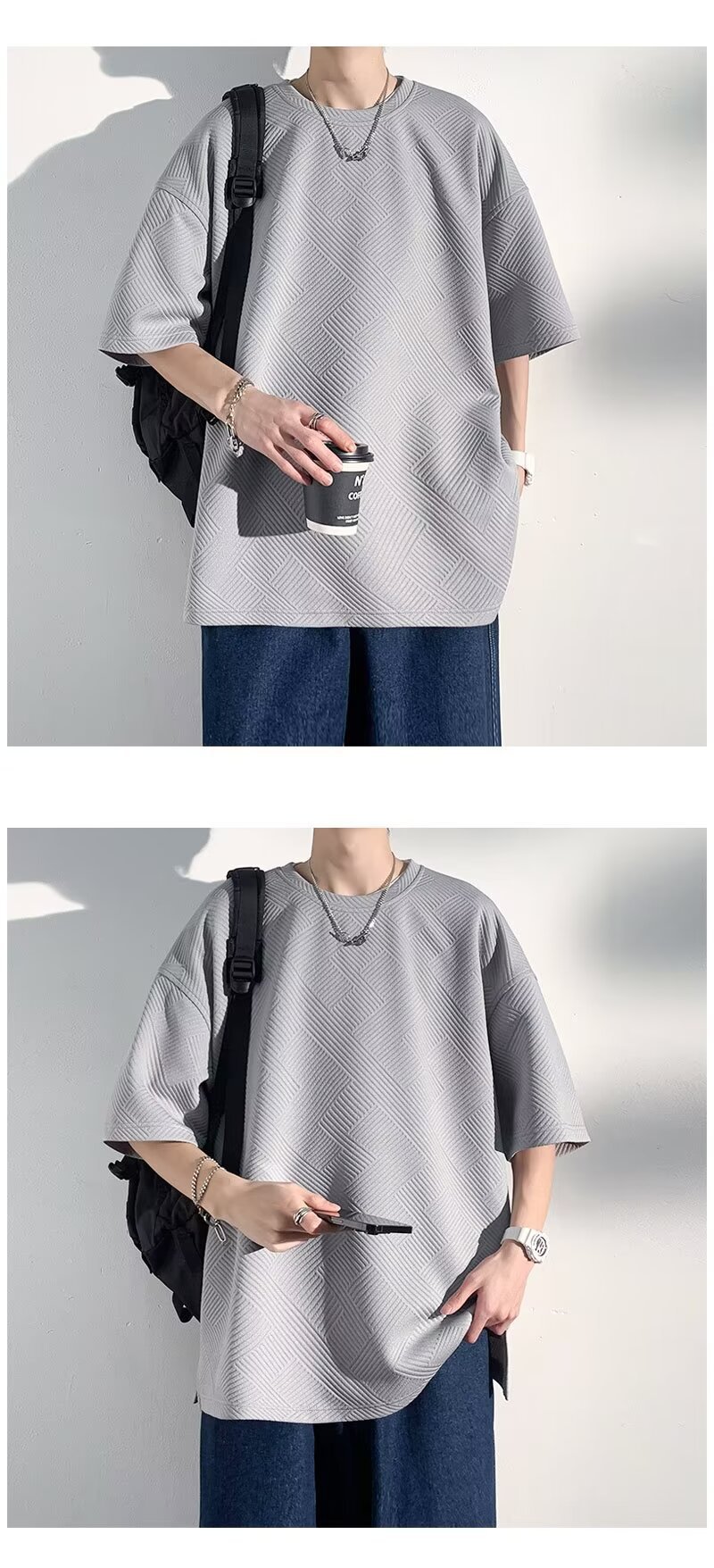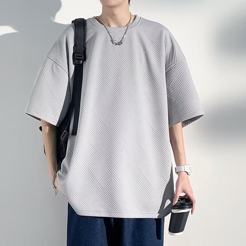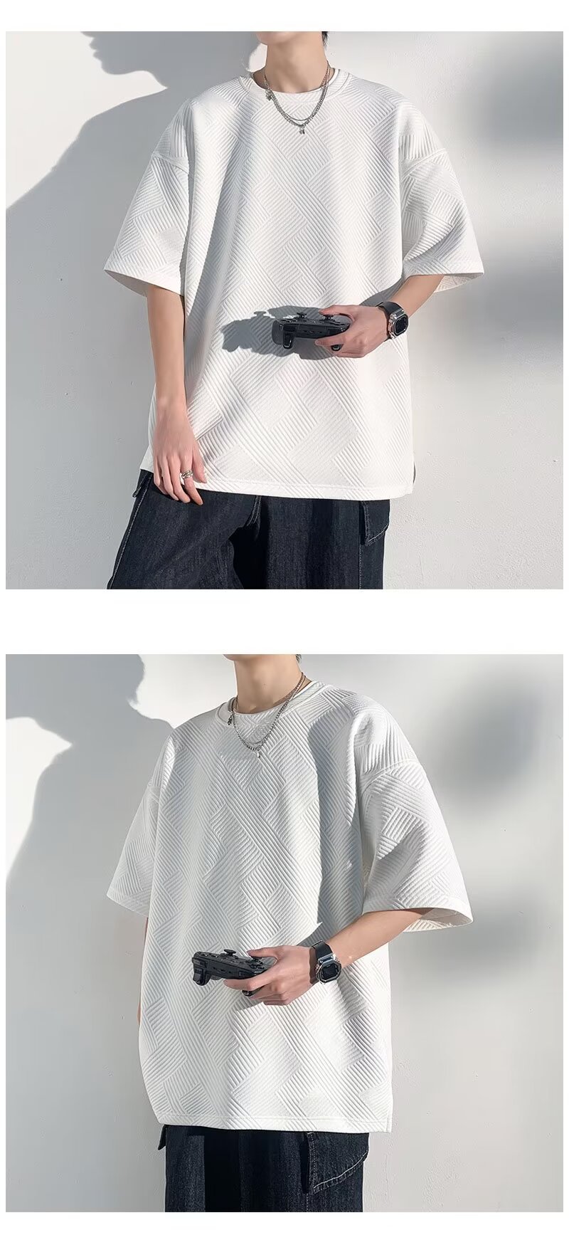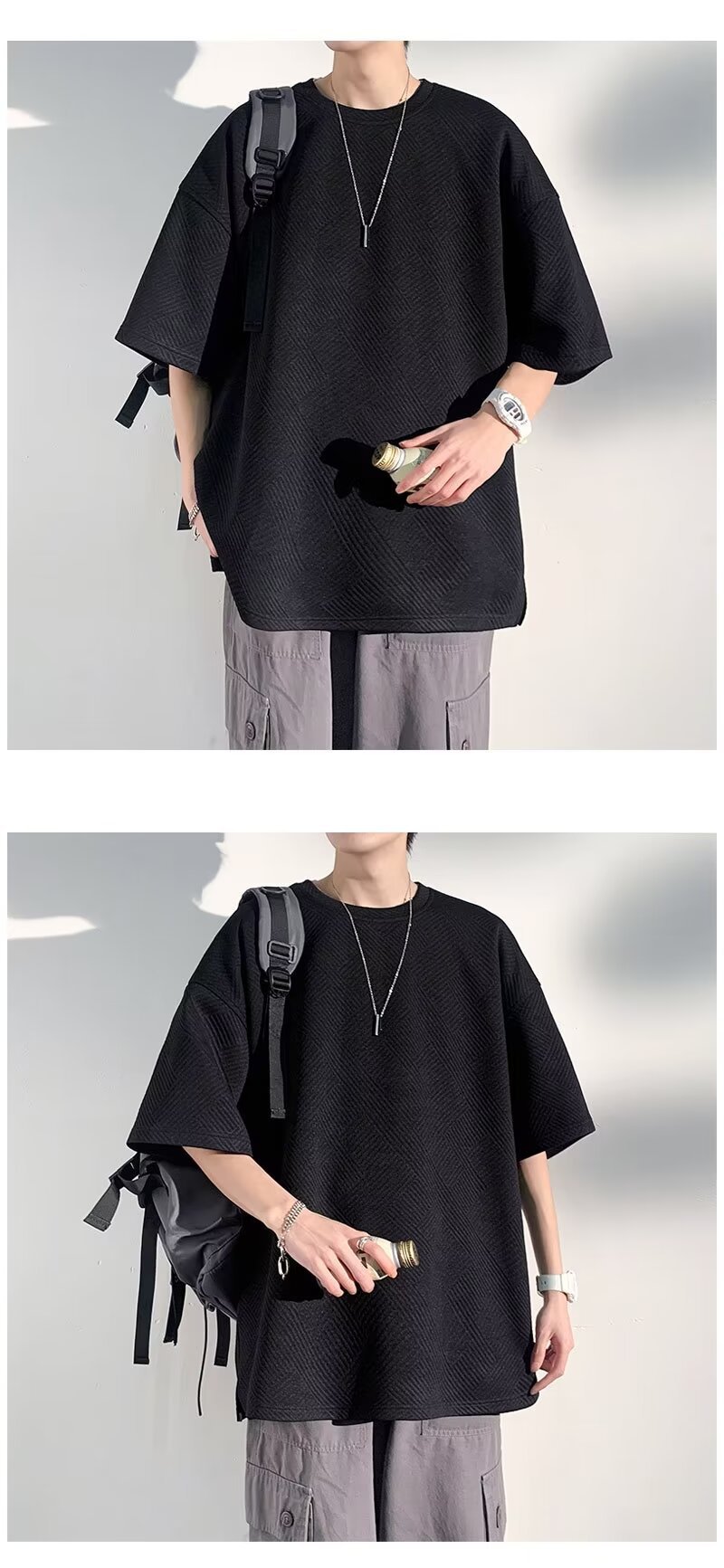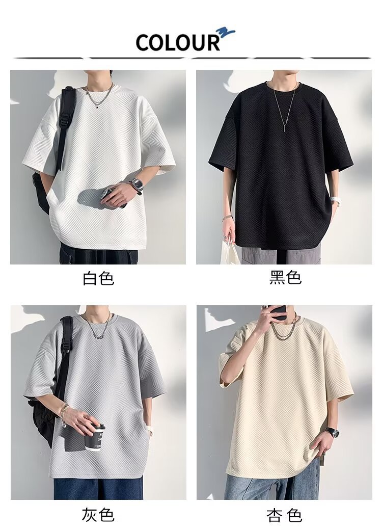 320g 헤비급 와플 반팔 티셔츠 남성 여름 2024 새로운 느슨한 대형 흰색 긴팔 티셔츠스토어 가기