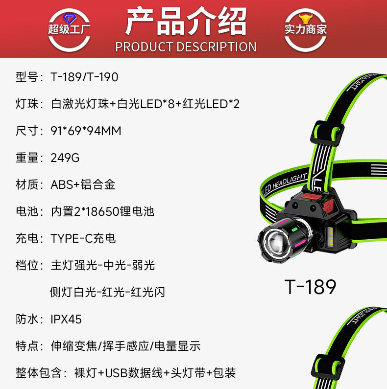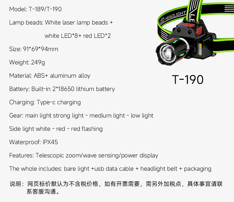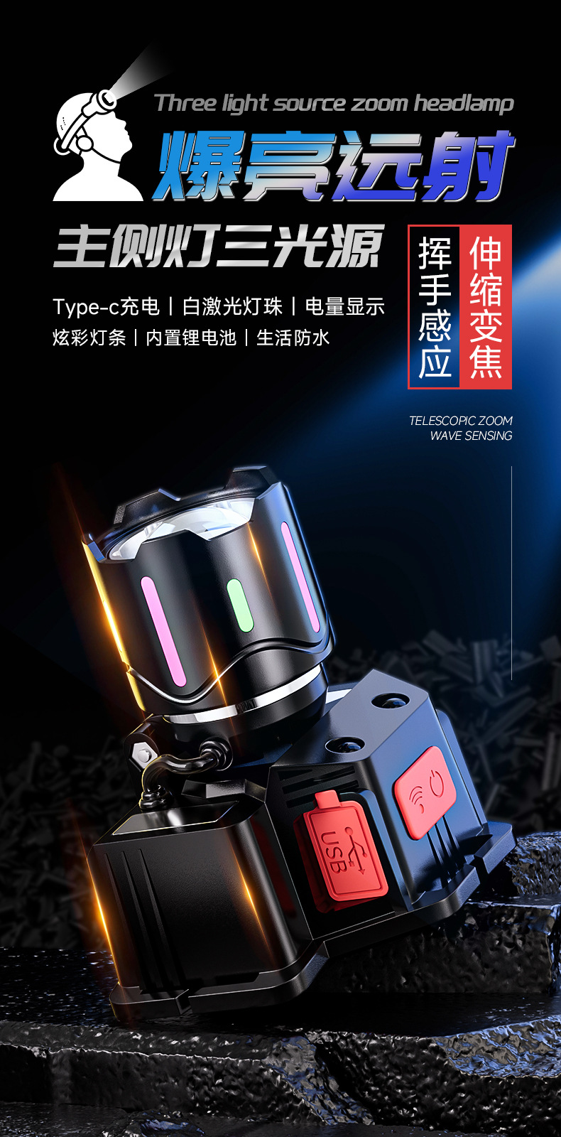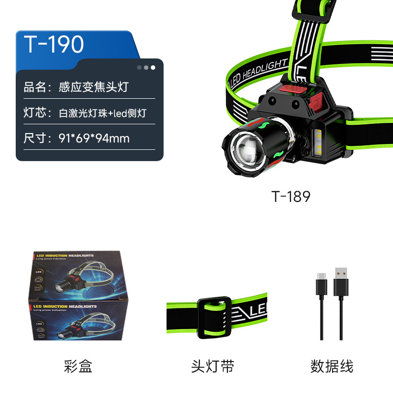유도 헤드 라이트 크로스 보더 흰색 레이저 강한 빛 슈퍼 밝은 충전식 야외 홈 스포츠 낚시 조명 작업 조명 헤드 라이트