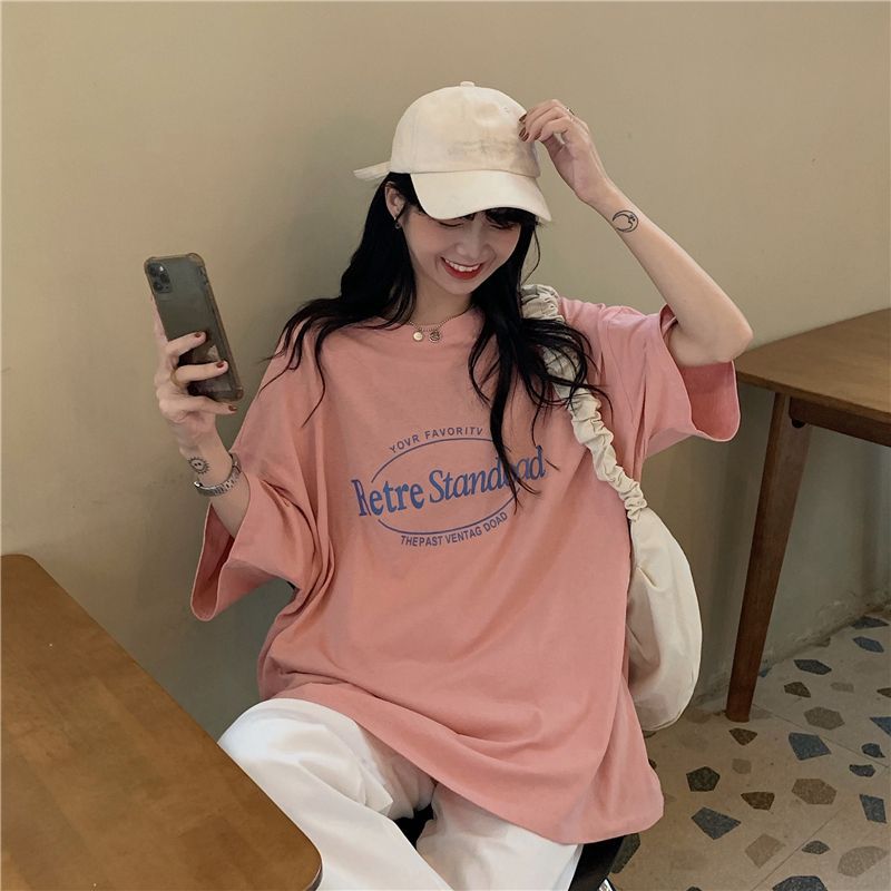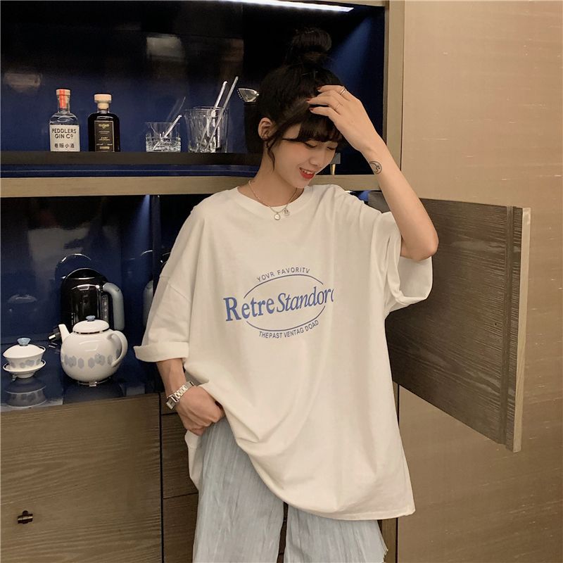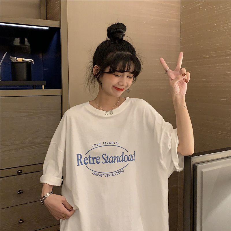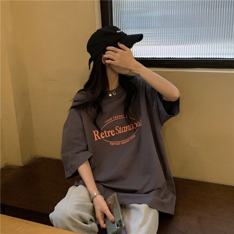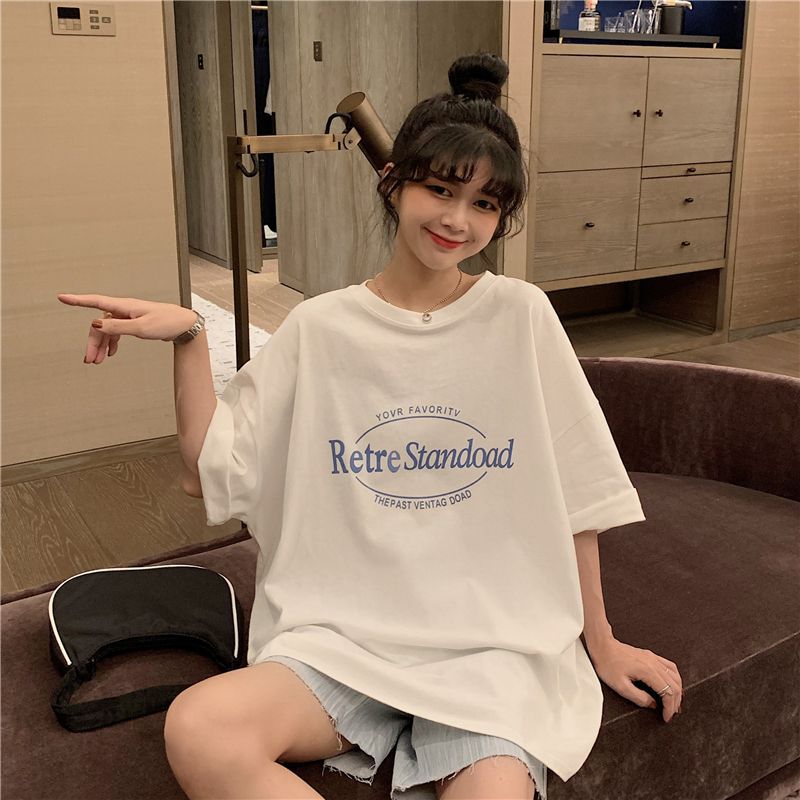 2025 년 여름 새로운 미국 레트로 중간 길이 BF 스타일 느슨한 플러스 사이즈 인터넷 인기 인스타그램 반팔 티셔츠 최고 여성 트렌디스토어 가기