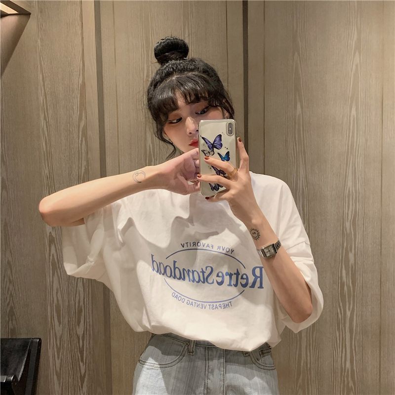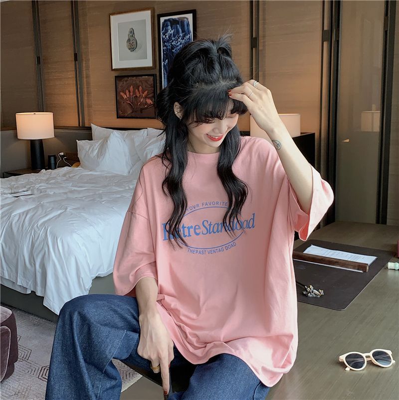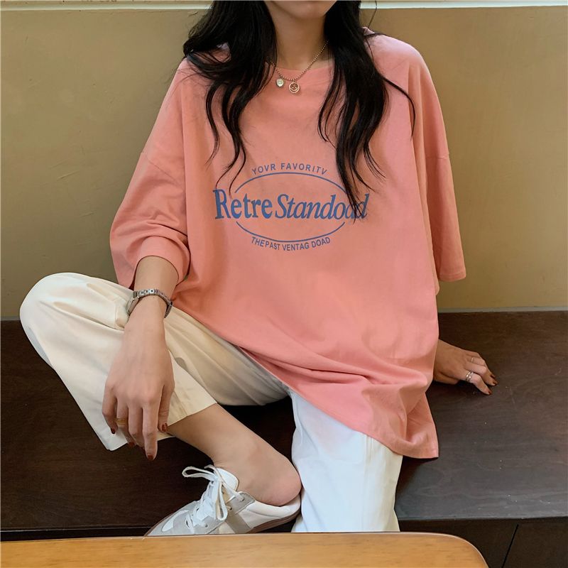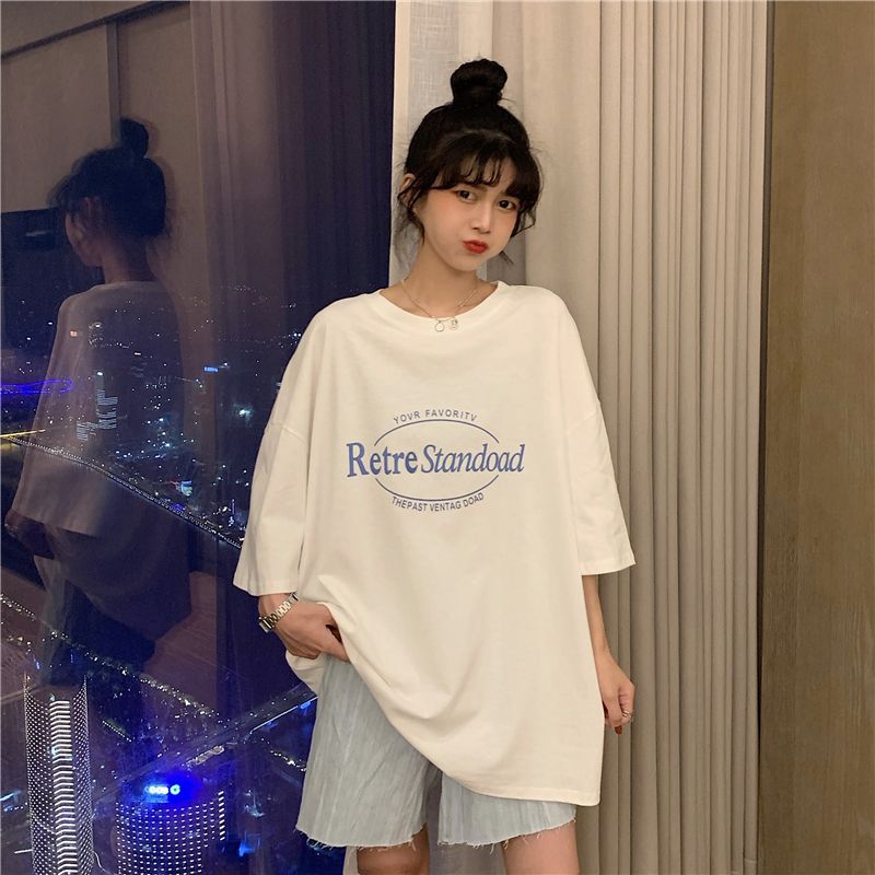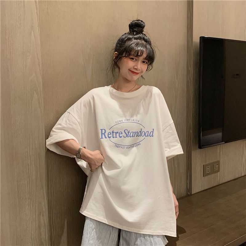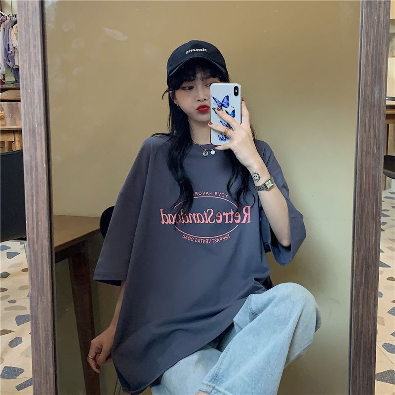 2025 년 여름 새로운 미국 레트로 중간 길이 BF 스타일 느슨한 플러스 사이즈 인터넷 인기 인스타그램 반팔 티셔츠 최고 여성 트렌디스토어 가기