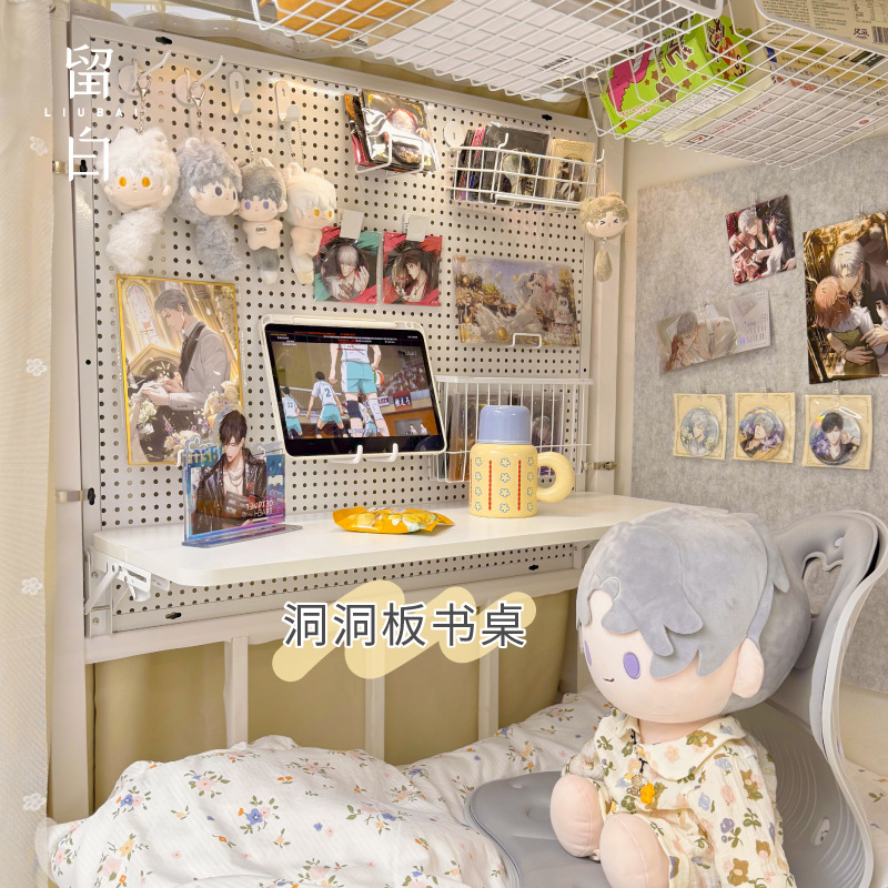 r^홀보드 침대 테이블 기숙사 접이식 이층 침대 공중에 뜨는 컴퓨터 테이블 대형 수납 선반 소형 테이블 마그네틱