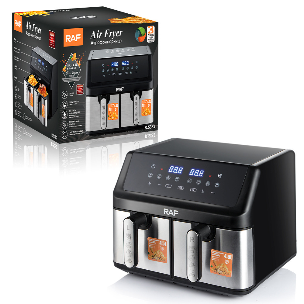 유럽 표준 크로스보더 이중 냄비 에어 프라이어 이중 챔버 대용량 다기능 이중 냄비 이중 바구니 지능형 터치 스크린 오일 프리스토어 가기