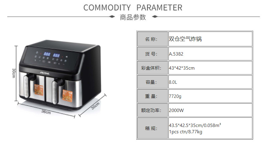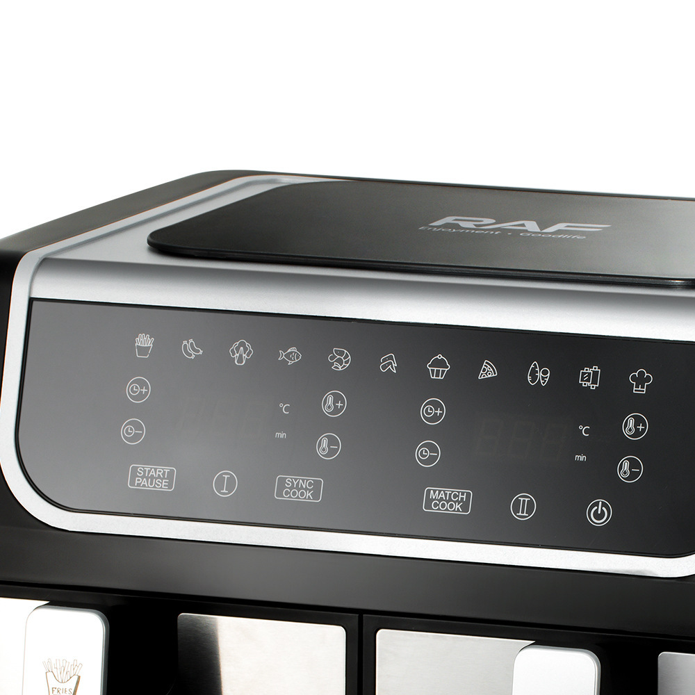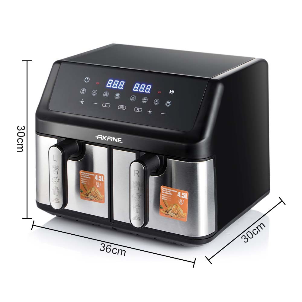 유럽 표준 크로스보더 이중 냄비 에어 프라이어 이중 챔버 대용량 다기능 이중 냄비 이중 바구니 지능형 터치 스크린 오일 프리