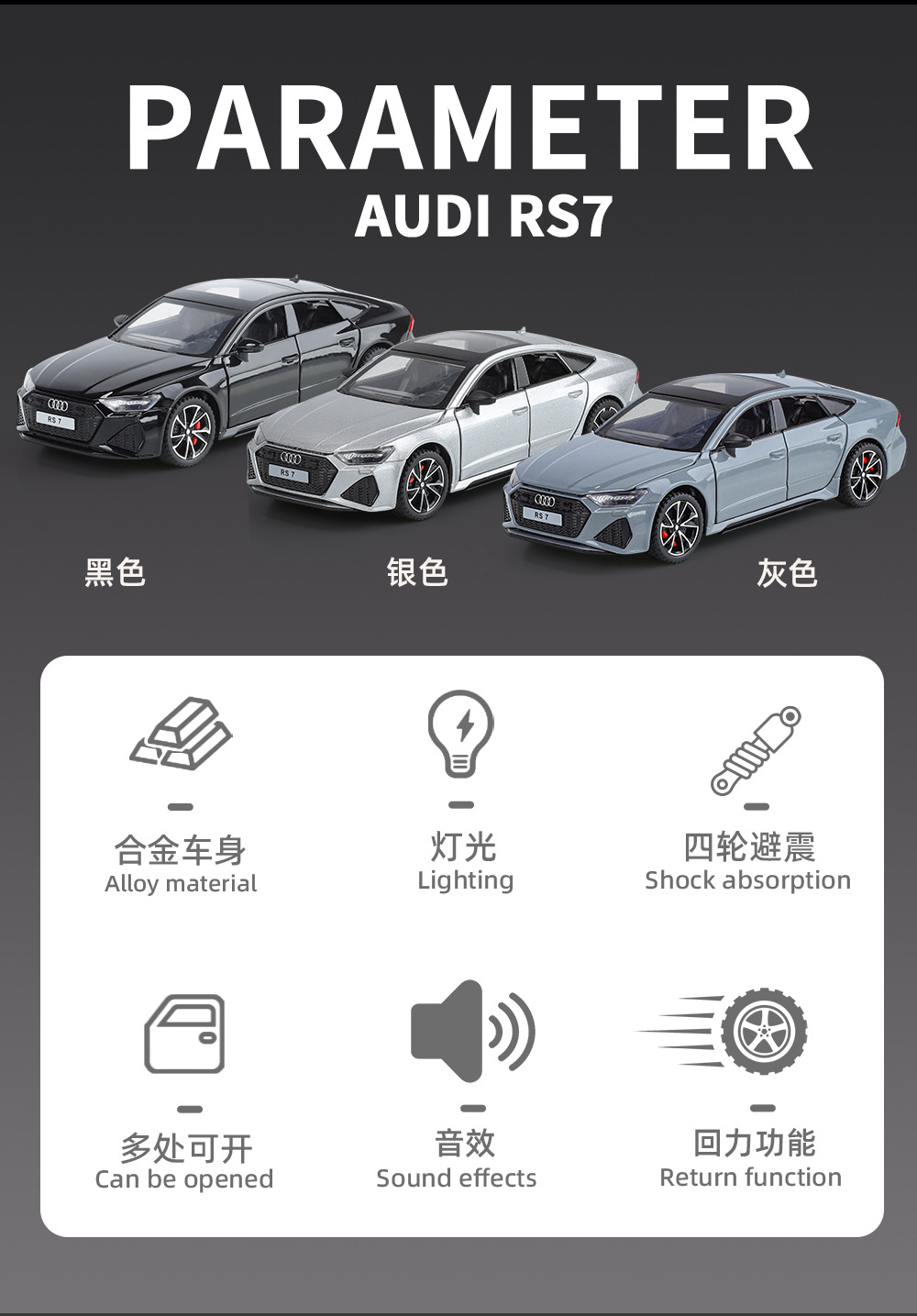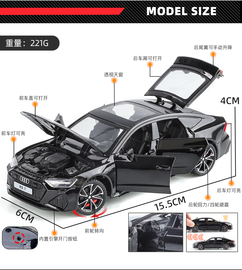 1:32 정품 공인 아우디 RS7 시뮬레이션 합금 자동차 모델 조향 음향 옵틱 포스 시뮬레이션 합금 자동차 자동차스토어 가기
