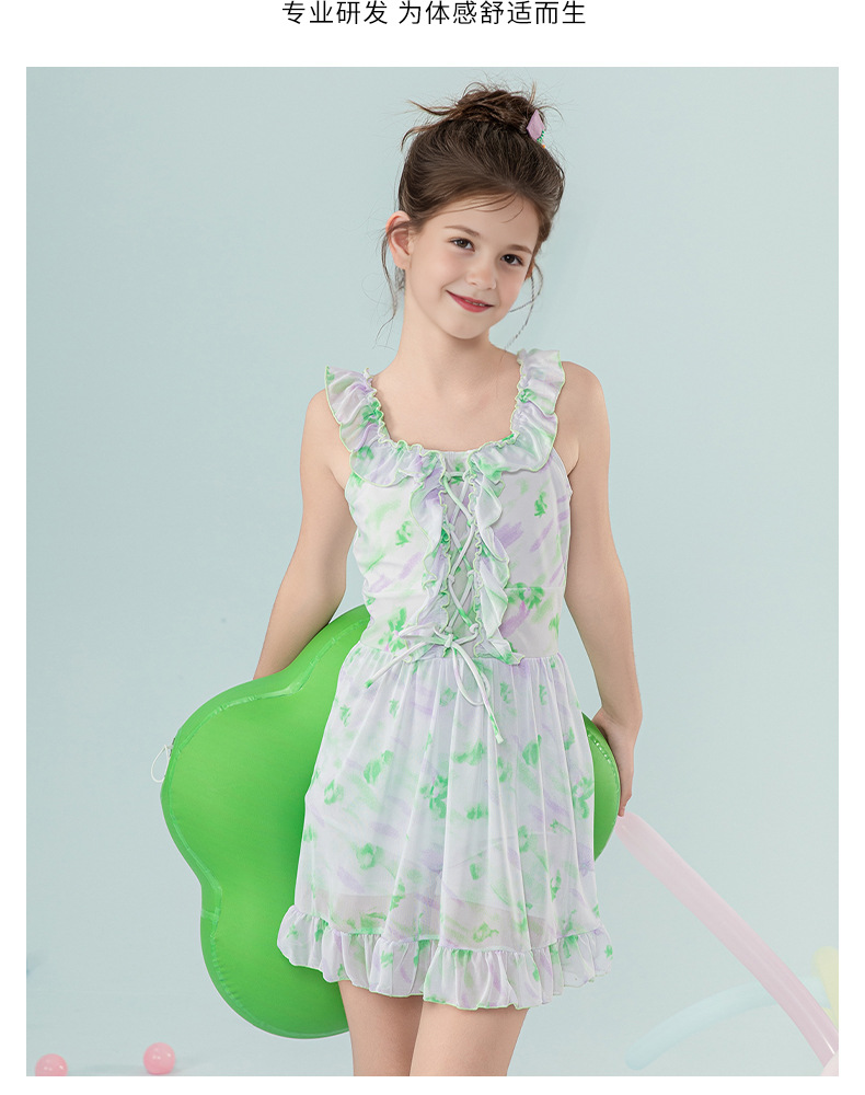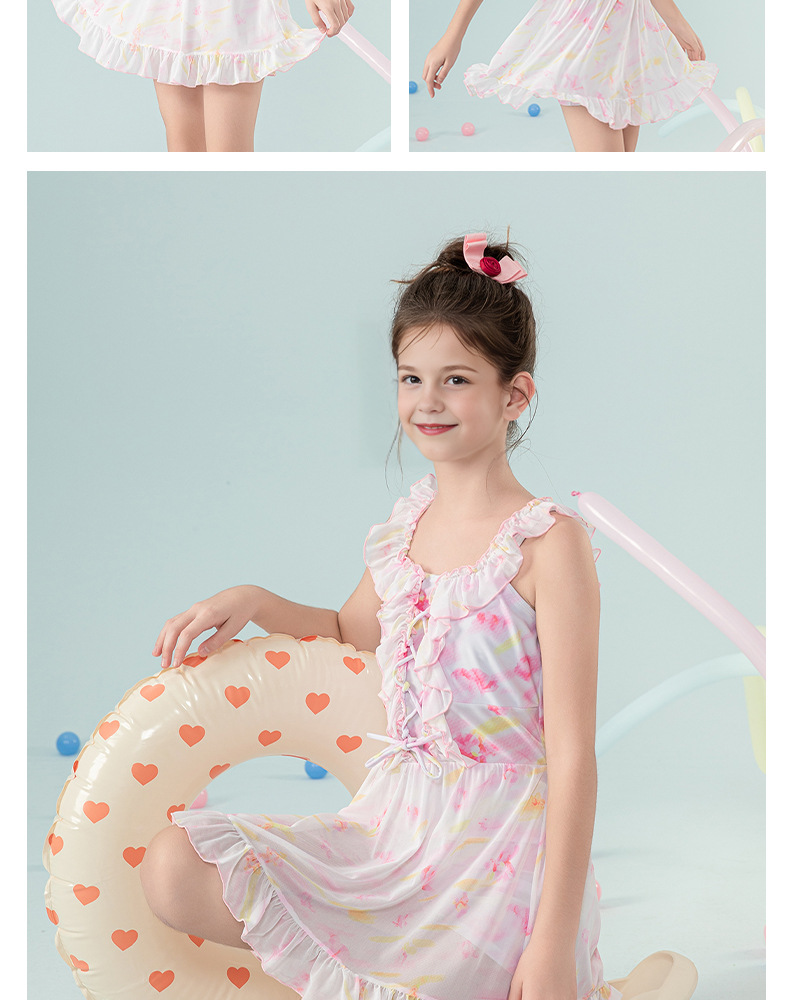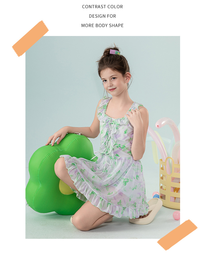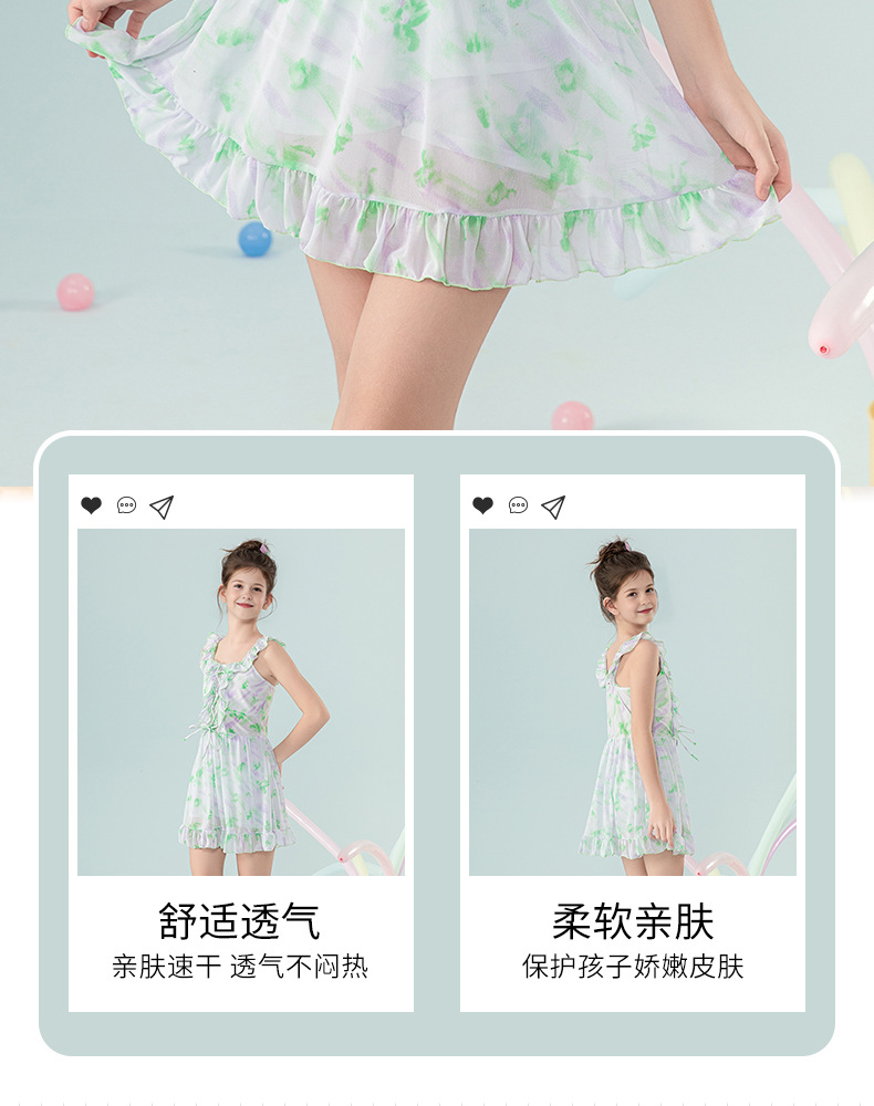 아동 수영복 2025 새로운 스타일 중대형 아동 및 소녀 달콤하고 상큼한 서스펜더 드레스 서양식 휴가 수영복