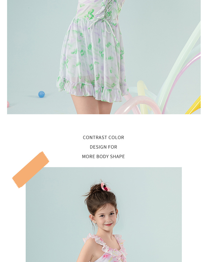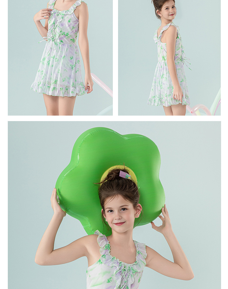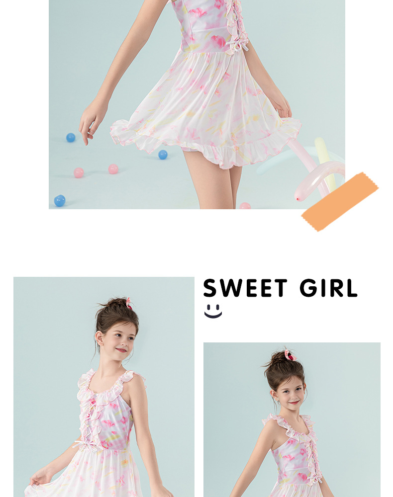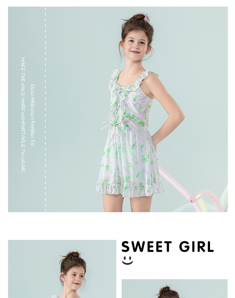 아동 수영복 2025 새로운 스타일 중대형 아동 및 소녀 달콤하고 상큼한 서스펜더 드레스 서양식 휴가 수영복