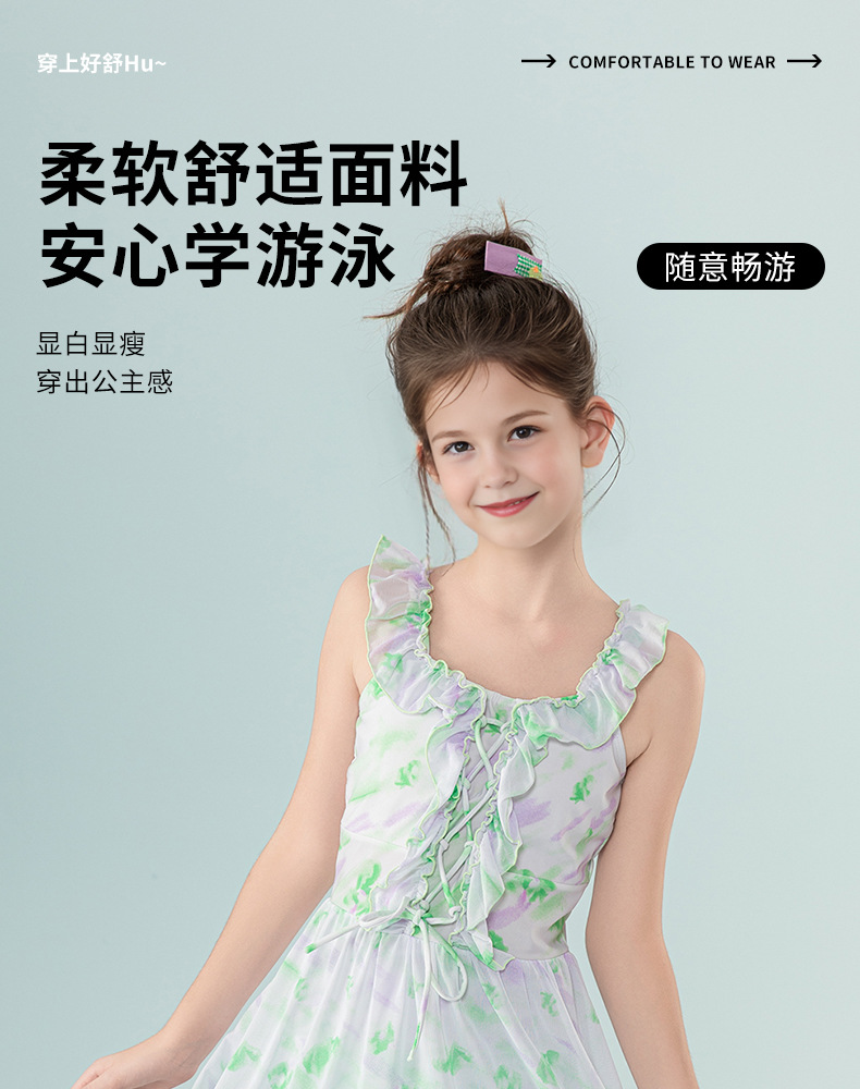 아동 수영복 2025 새로운 스타일 중대형 아동 및 소녀 달콤하고 상큼한 서스펜더 드레스 서양식 휴가 수영복스토어 가기