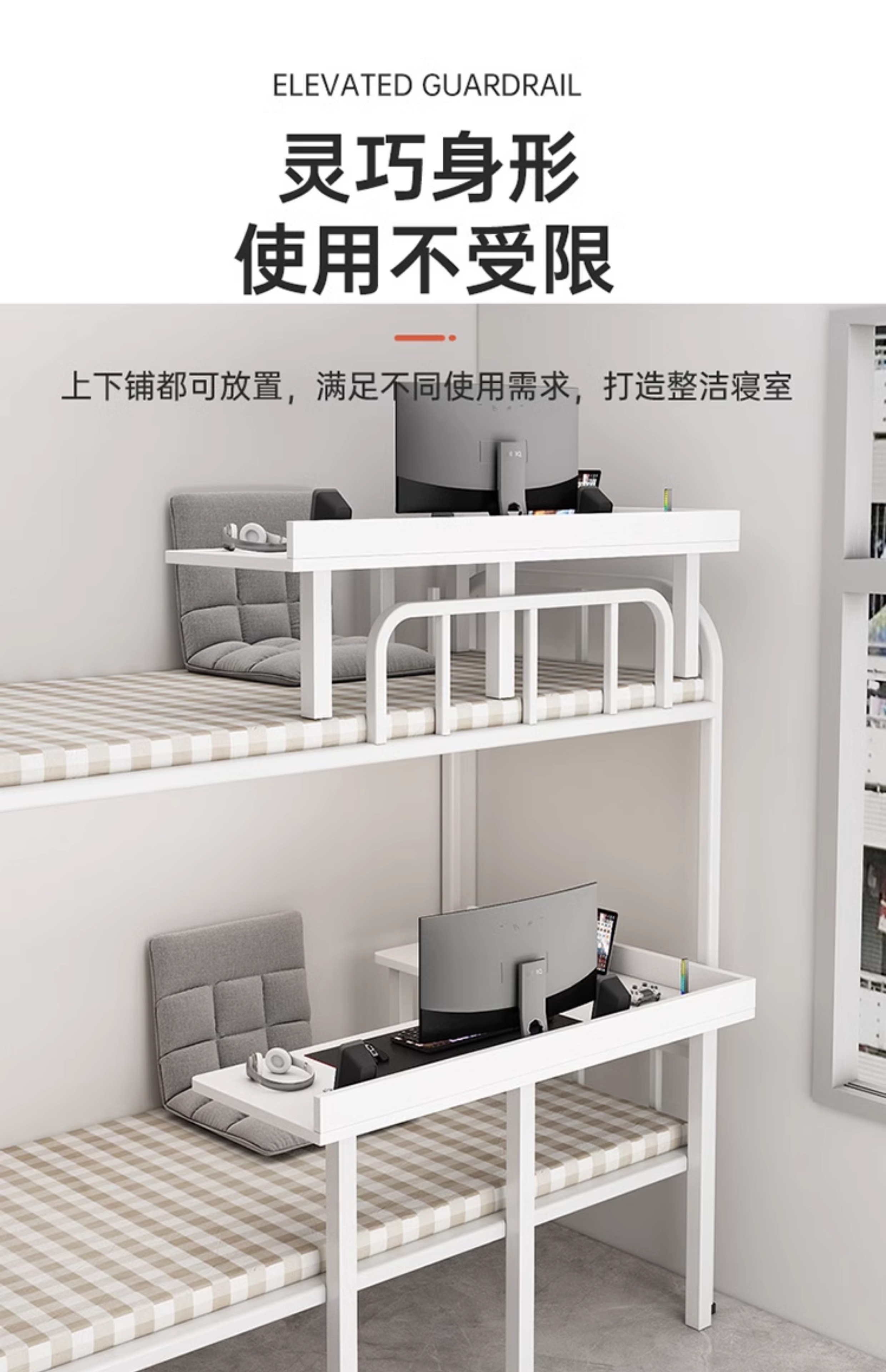 • ♚Yumeng 흰색 데스크탑 + 흰색 선반(하단 침대 기본 모델 오른쪽 모서리)