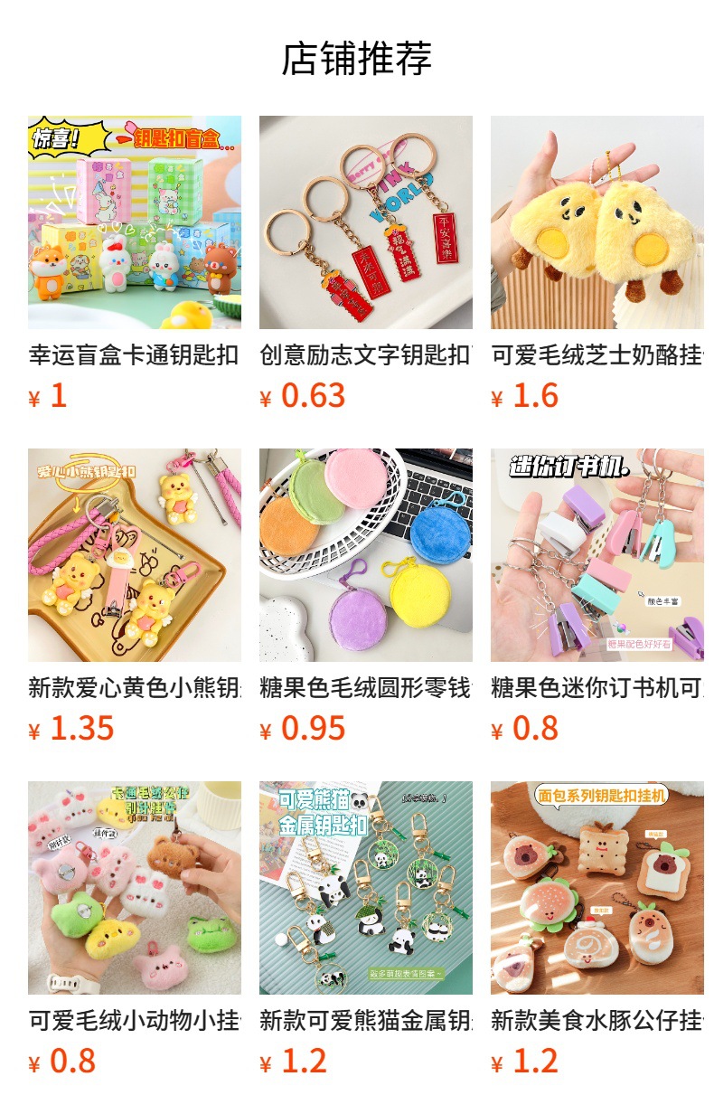 귀여운 봉제 동물 펜던트 만화 인형 열쇠고리 장식품 캔디 컬러 가방 장식품 도매스토어 가기