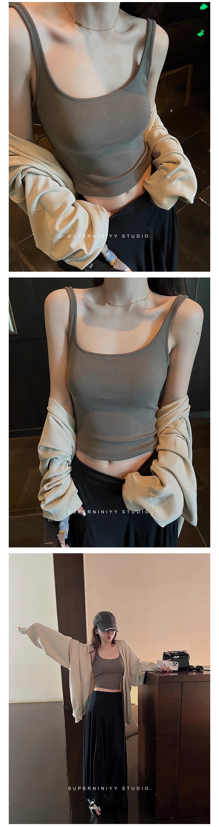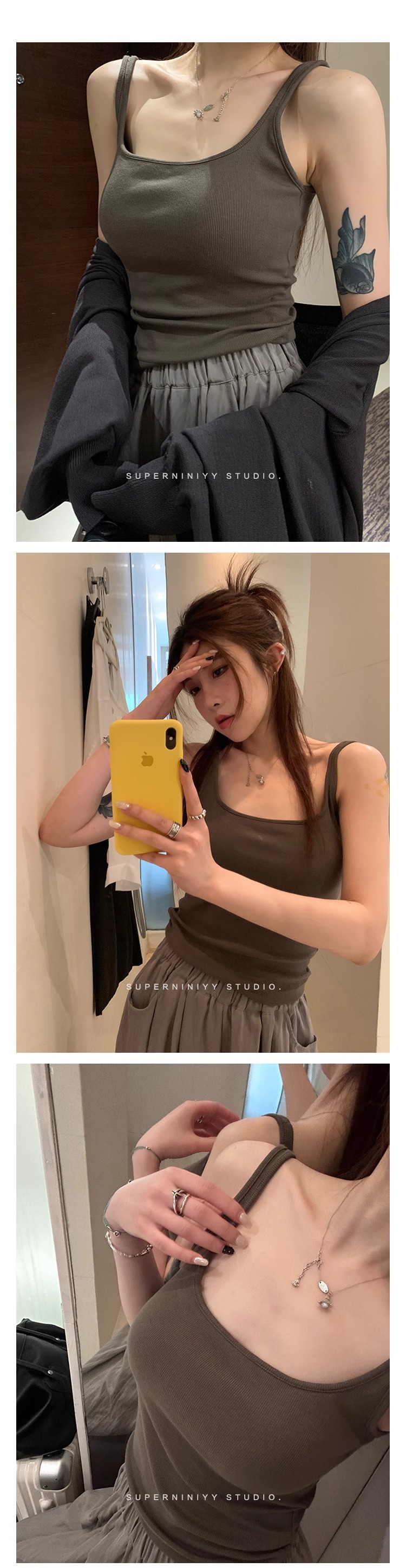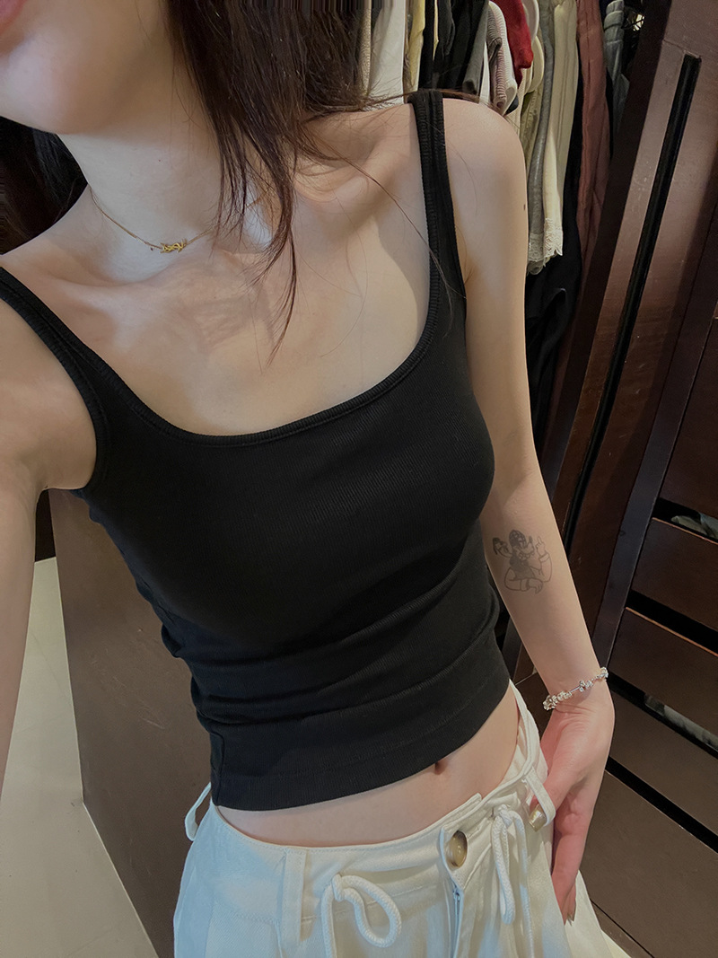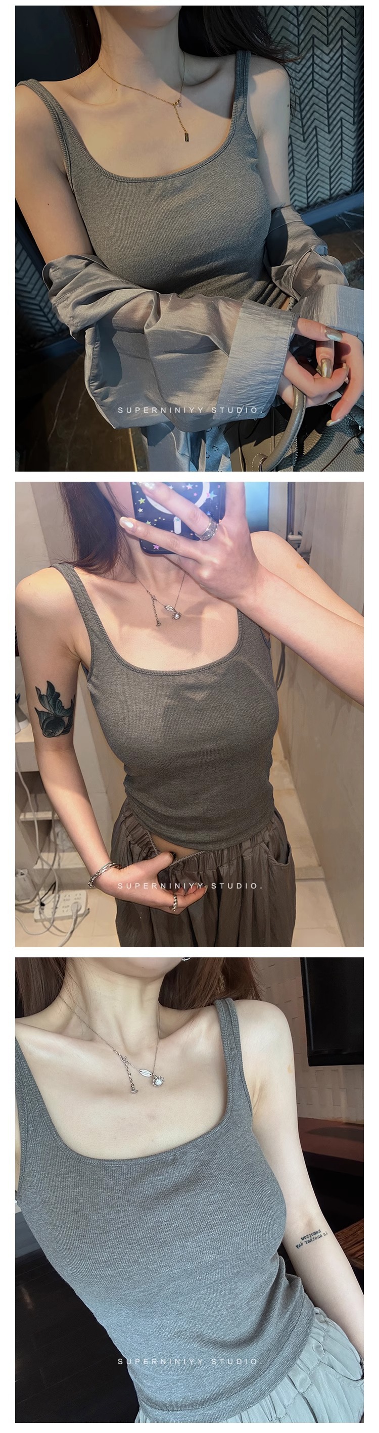 2226 # 슈퍼니니이 가슴살 커버 효과, 스타일리시한 내장형 패드, 벨벳 타이트핏 민소매 나시, 외출복으로도 착용 가능