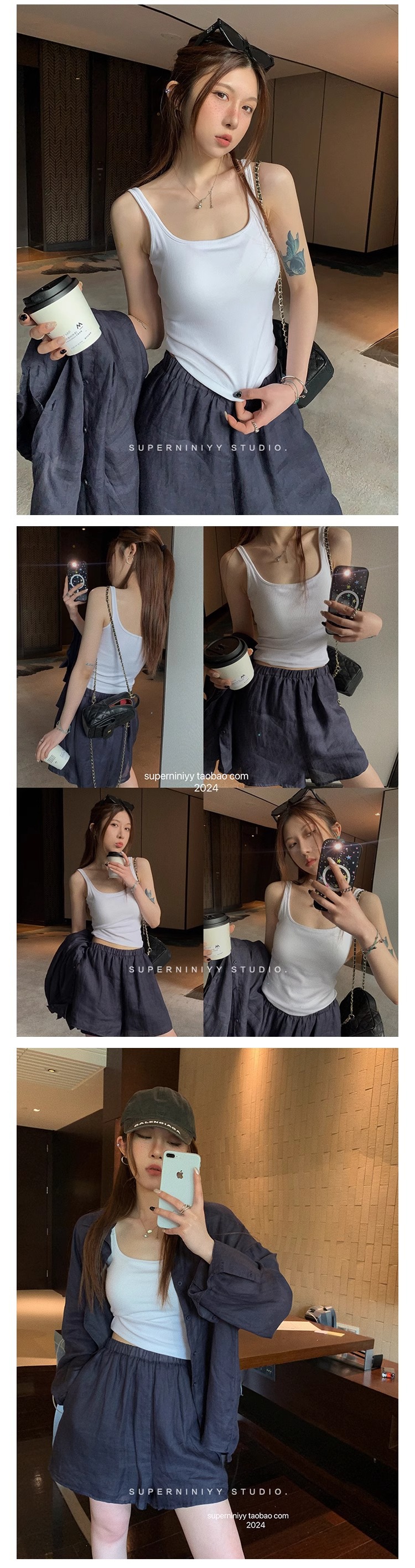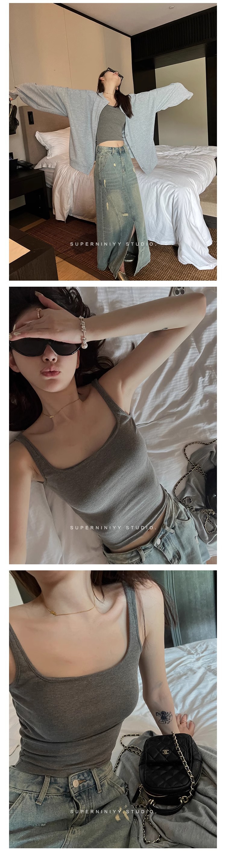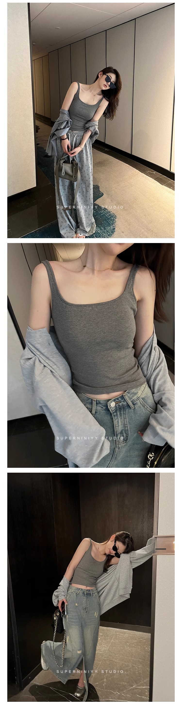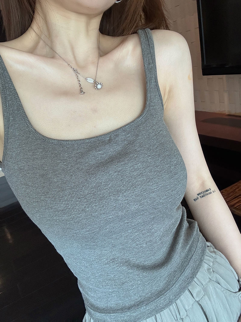 2226 # 슈퍼니니이 가슴살 커버 효과, 스타일리시한 내장형 패드, 벨벳 타이트핏 민소매 나시, 외출복으로도 착용 가능