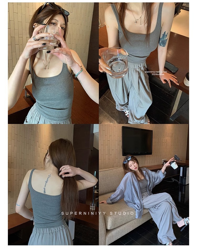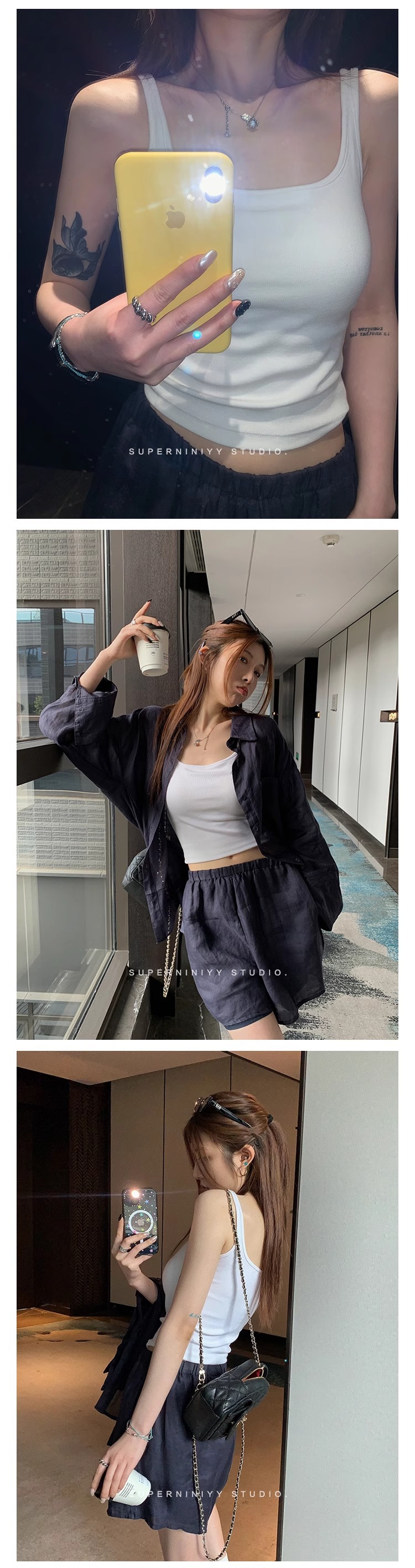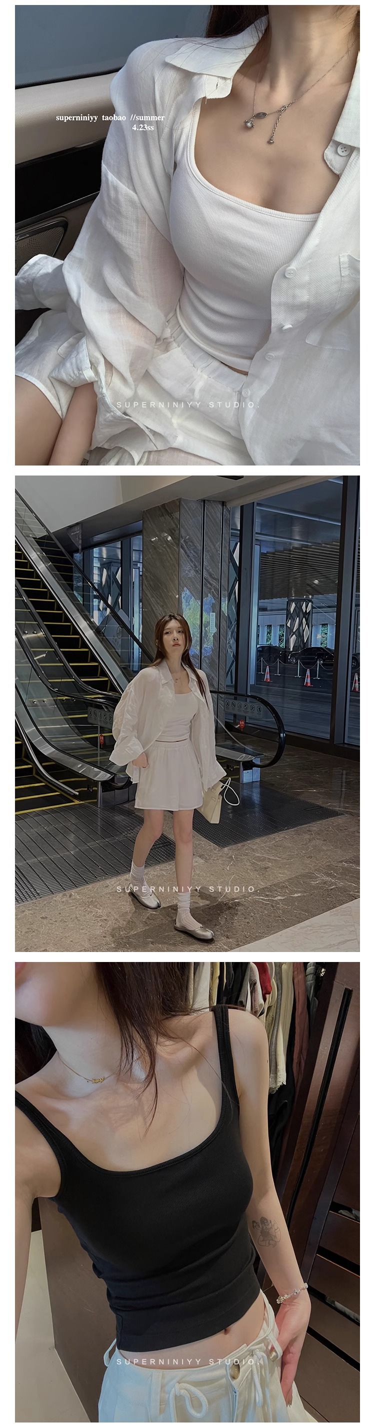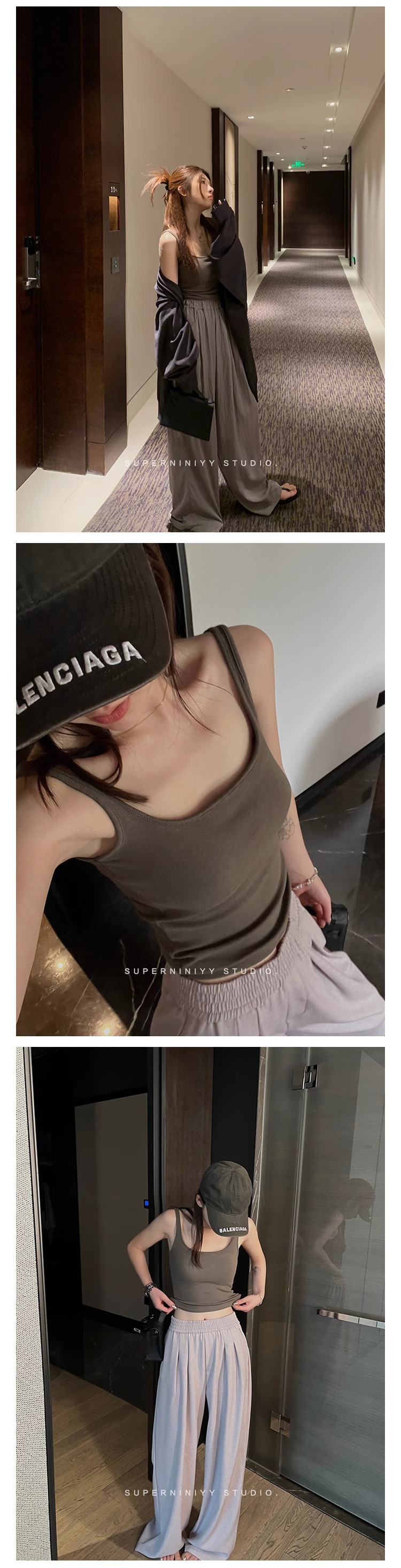 2226 # 슈퍼니니이 가슴살 커버 효과, 스타일리시한 내장형 패드, 벨벳 타이트핏 민소매 나시, 외출복으로도 착용 가능