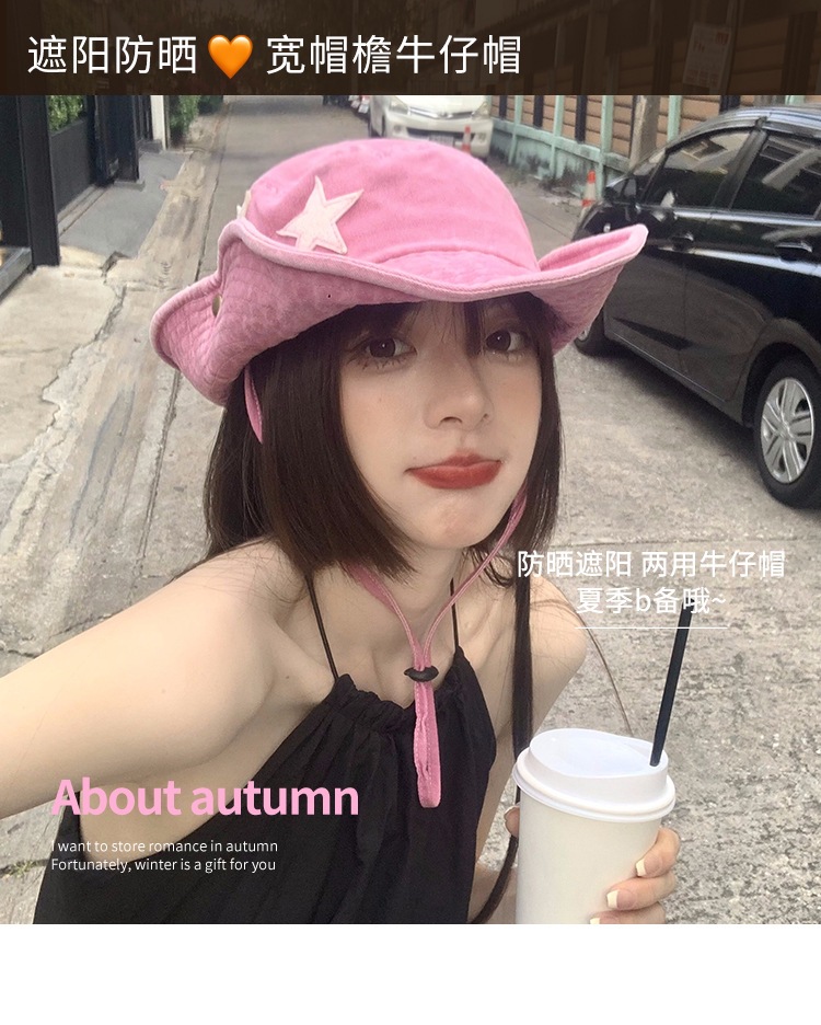 여름 핫걸을 위한 핑크색 어부 모자 복고풍 야외 등산 모자 태양 보호 캠핑 등산 서부 카우보이 모자스토어 가기