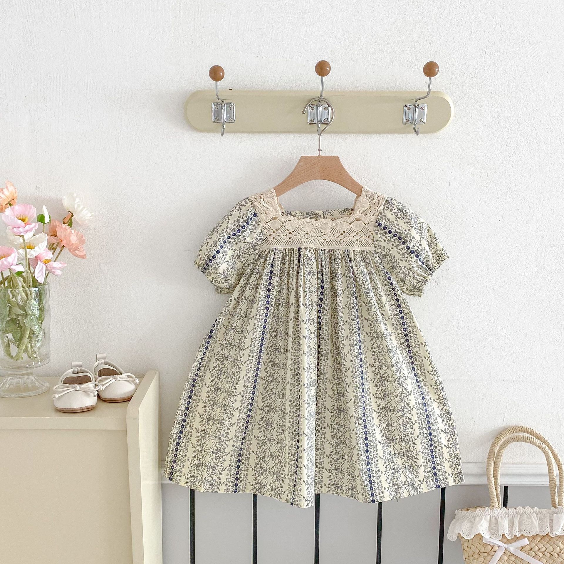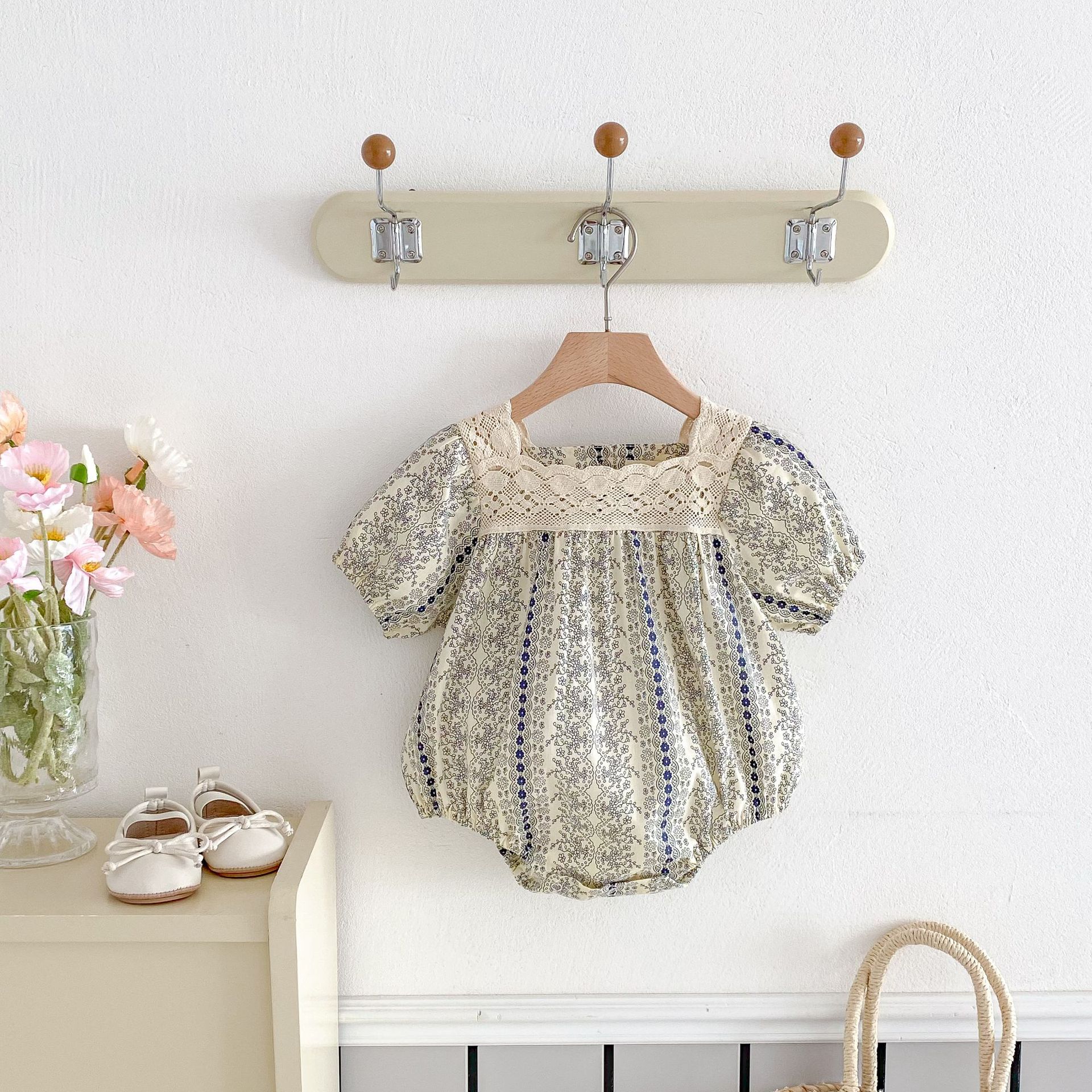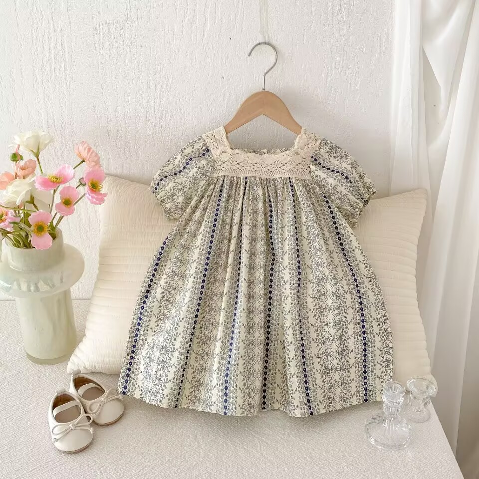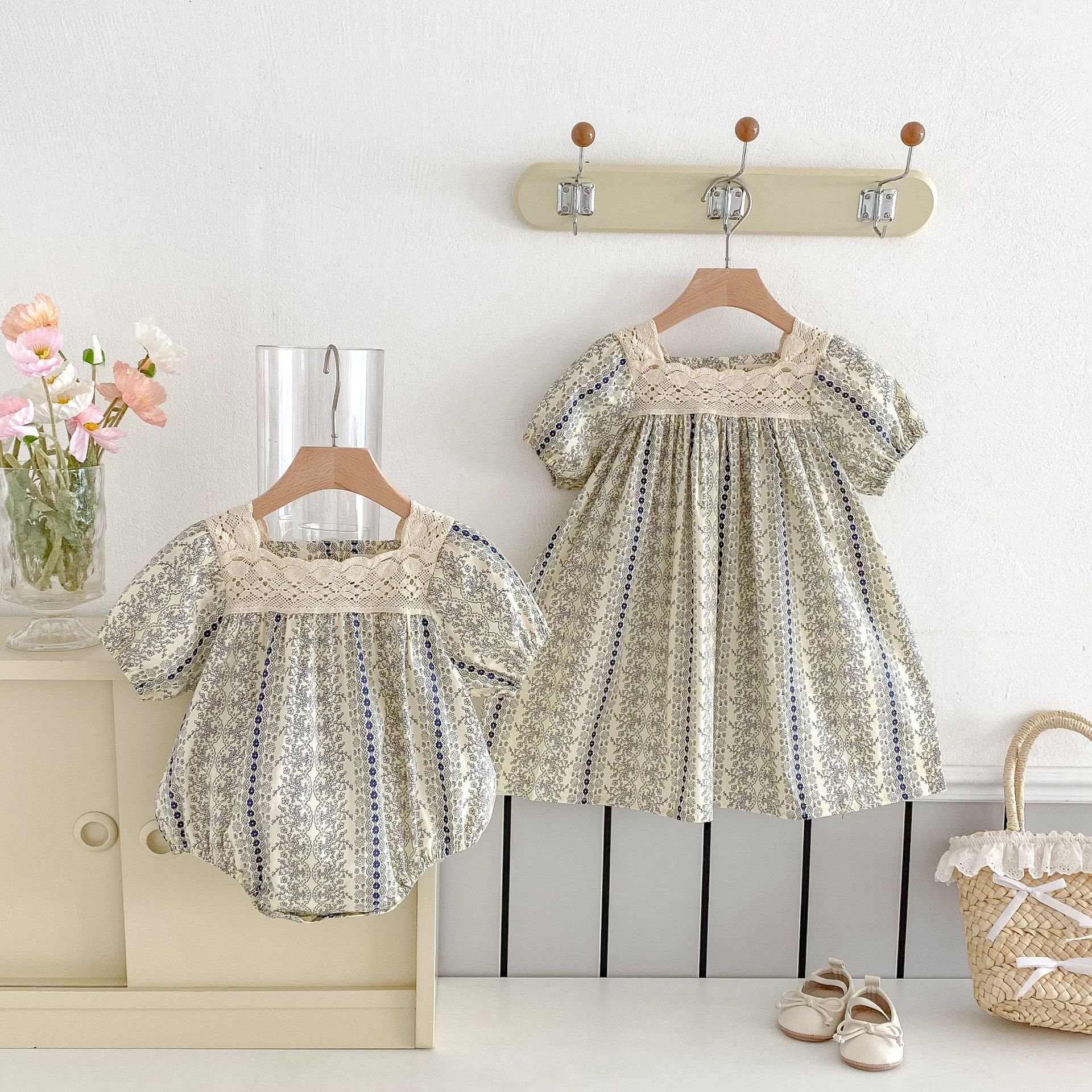 25 봄과 여름 아기 소녀 반팔 점프 수트 유아 등반 원피스 공주 꽃 레이스 원피스 자매스토어 가기