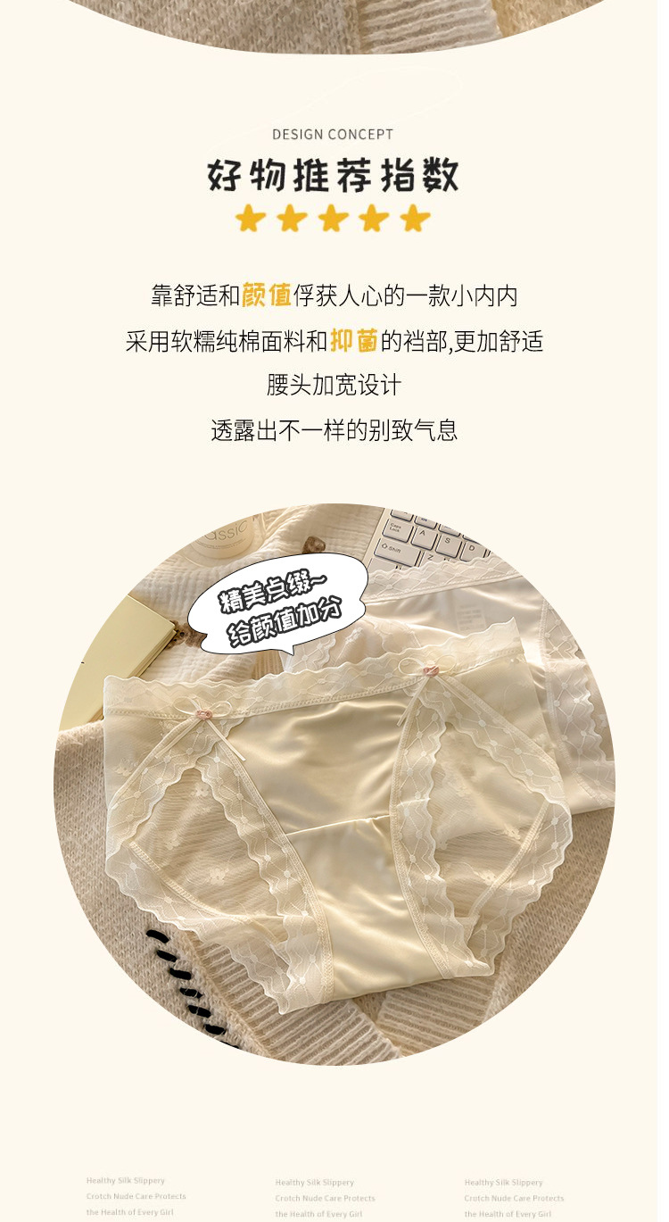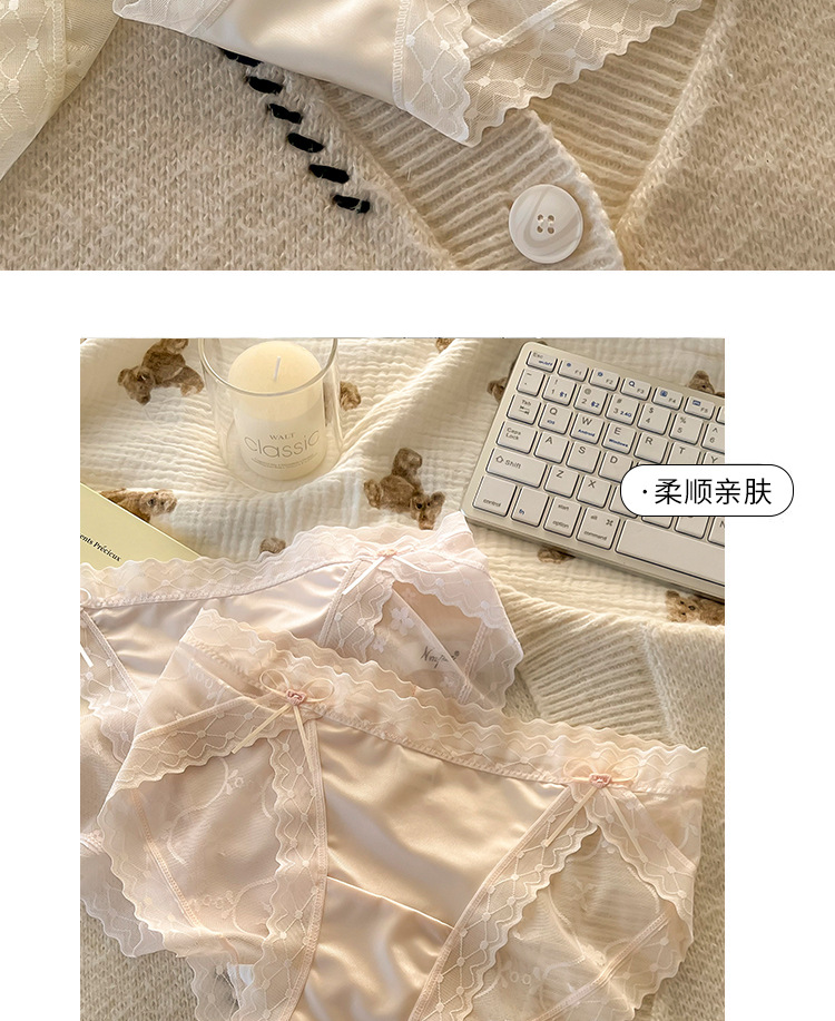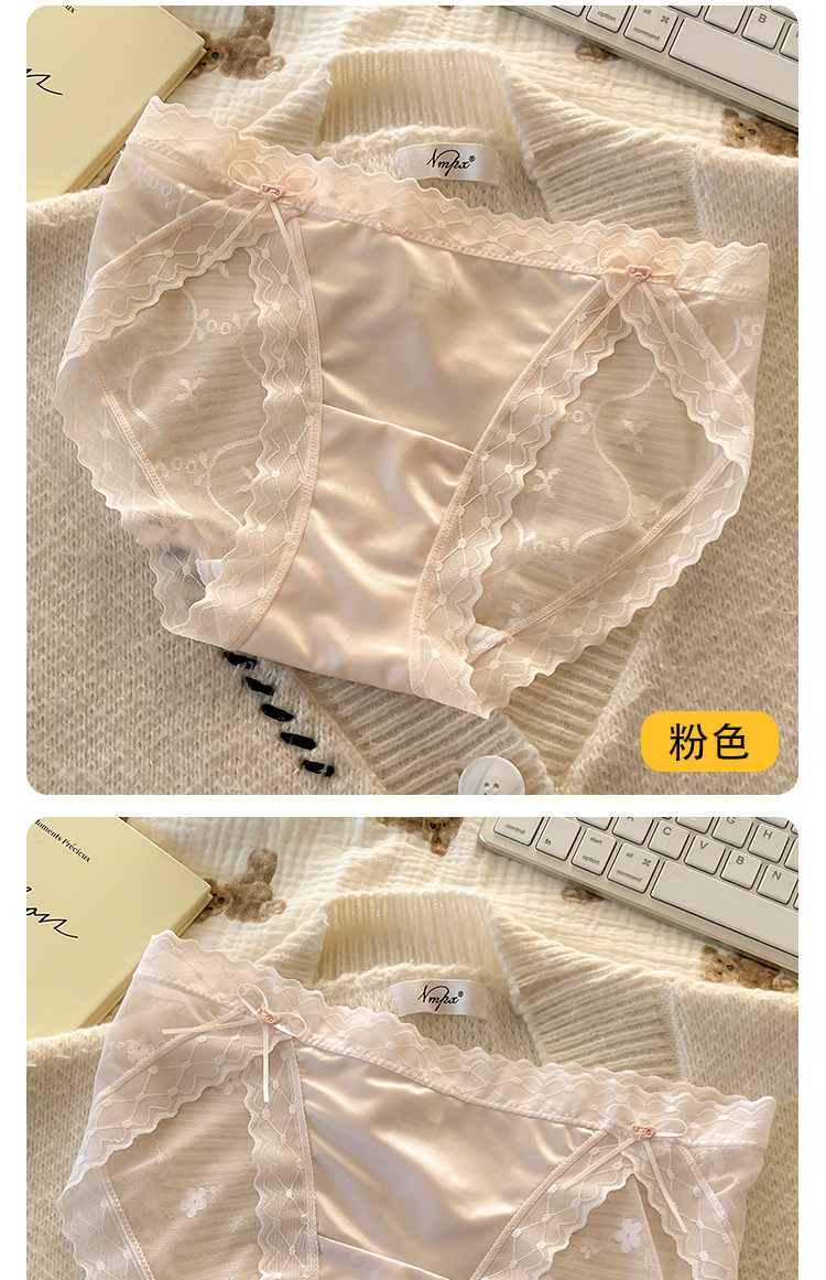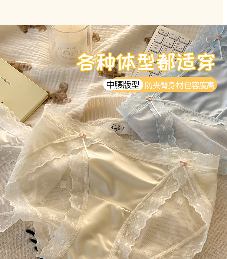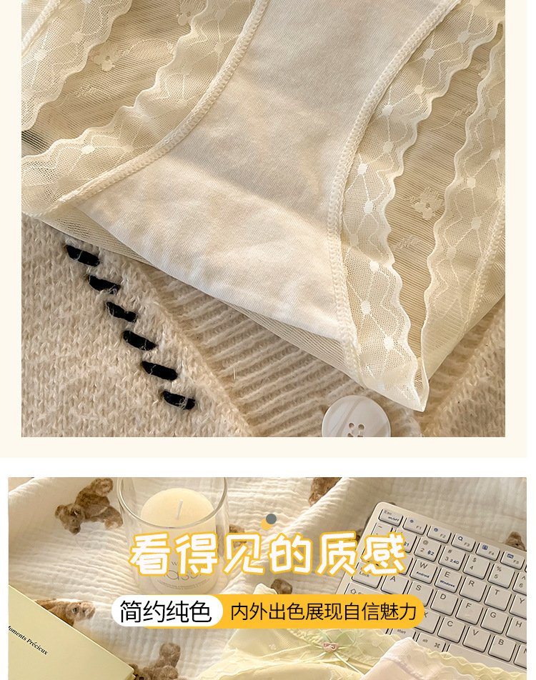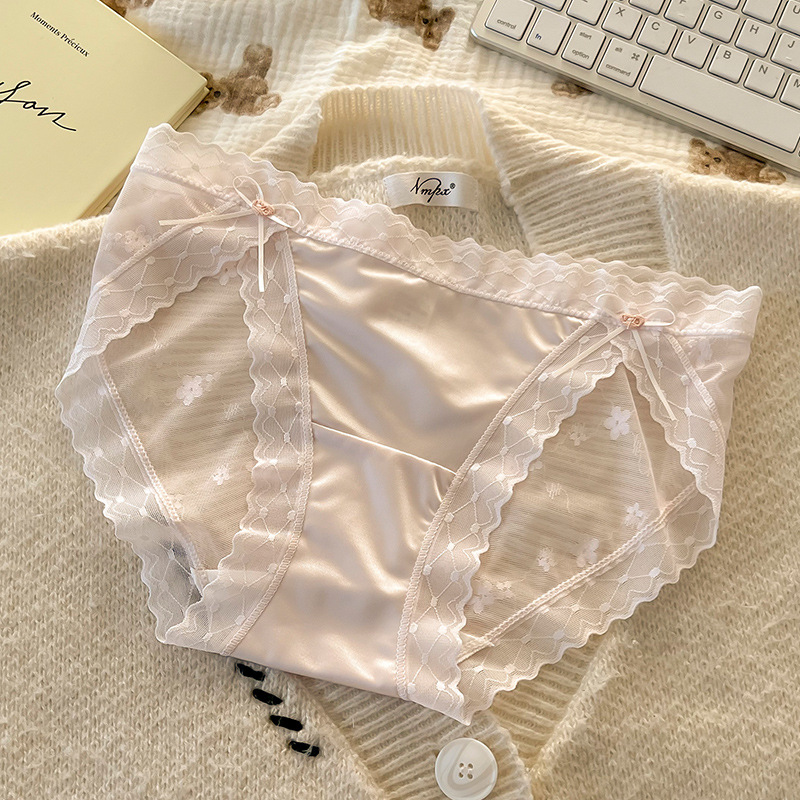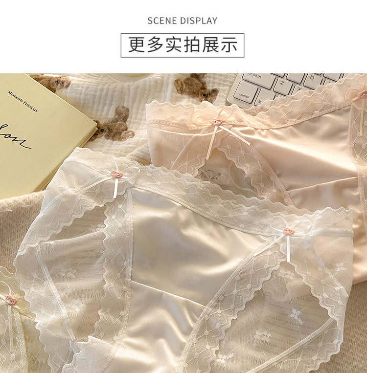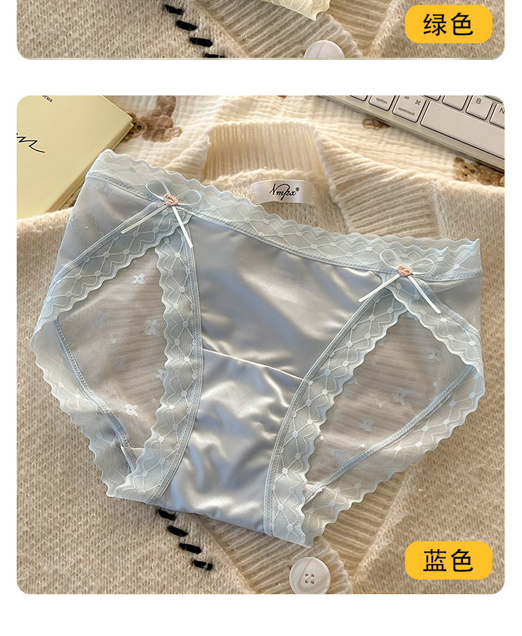 섹시한 레이스 소녀의 속옷 일본식 중간 허리 순면 크로트 비 마킹 아이스 실크 메쉬 여성의 삼각형 반바지스토어 가기