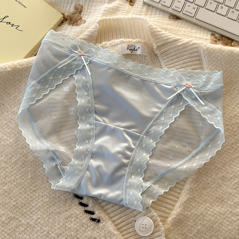 섹시한 레이스 소녀의 속옷 일본식 중간 허리 순면 크로트 비 마킹 아이스 실크 메쉬 여성의 삼각형 반바지