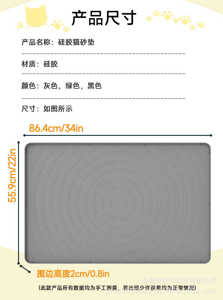 초대형 실리콘 고양이 모래 매트, 고양이 모래 상자, 물 튀김 방지 매트, 고양이 모래 제어 매트, 긁힘 방지 및 긁힘 방지 고양이 화장실 매트