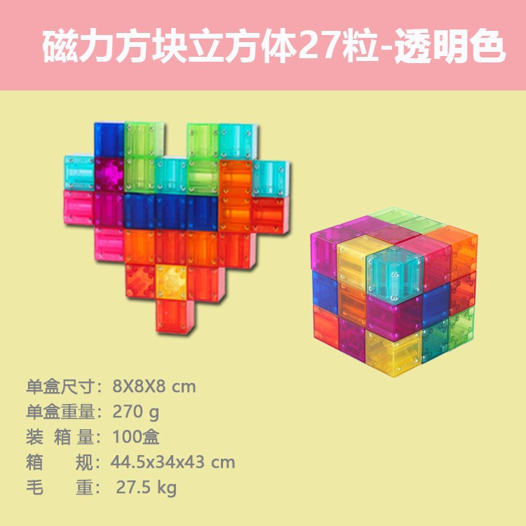 • 【입문용】 자석 큐브 27개 - 투명색 - 칼라 박스 포장