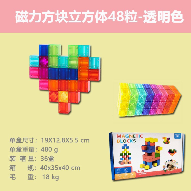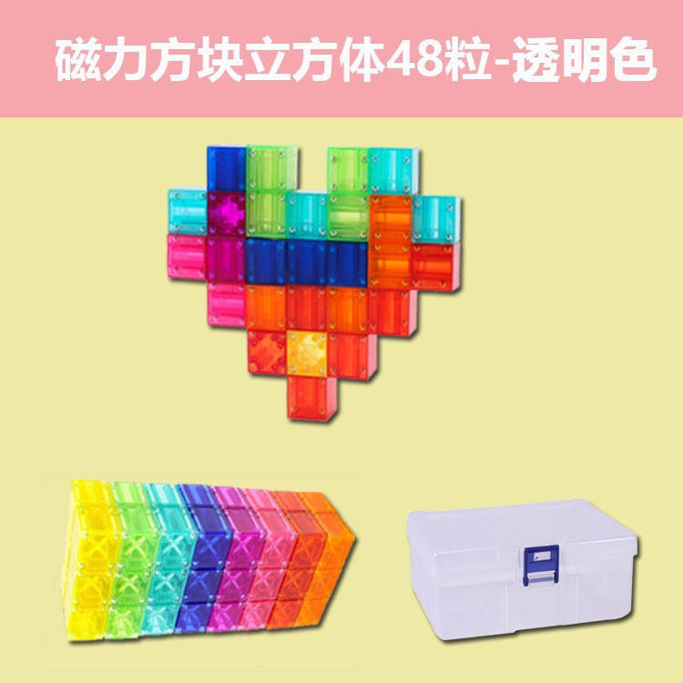 • 【럭셔리 세트】 자석 큐브 48개 – 투명 – 칼라 박스 포장