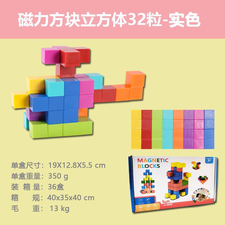 • 【인기】 자석 큐브 32피스 – 단색 – 칼라 박스 포장