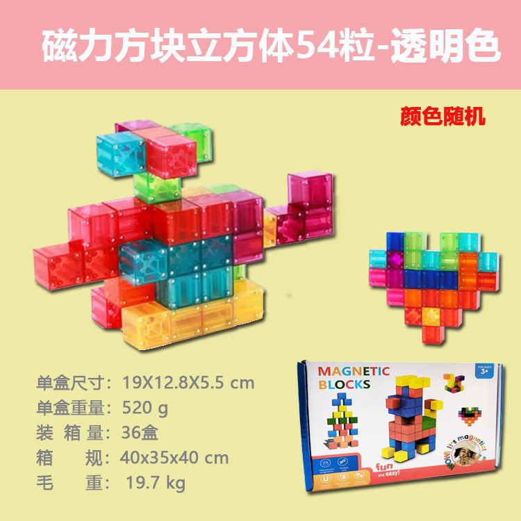 • 【맞춤 제작】 자석 큐브 54피스 – 투명 – 칼라 박스 포장