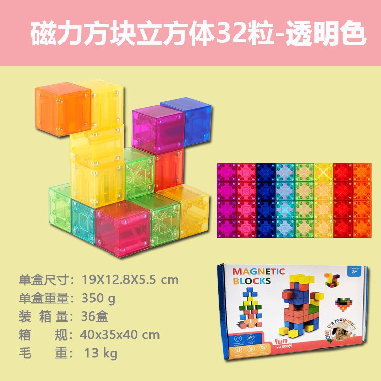 • 【인기】 자석 큐브 32피스 – 투명 – 칼라 박스 포장