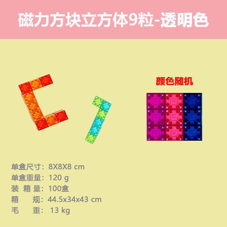 • 【체험용】 자석 큐브 9개입 – 투명 – 칼라 박스 포장