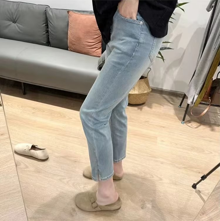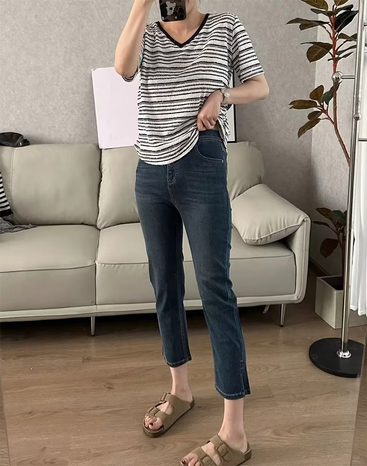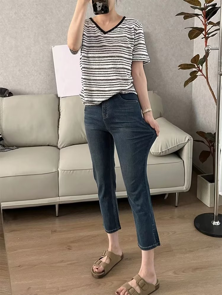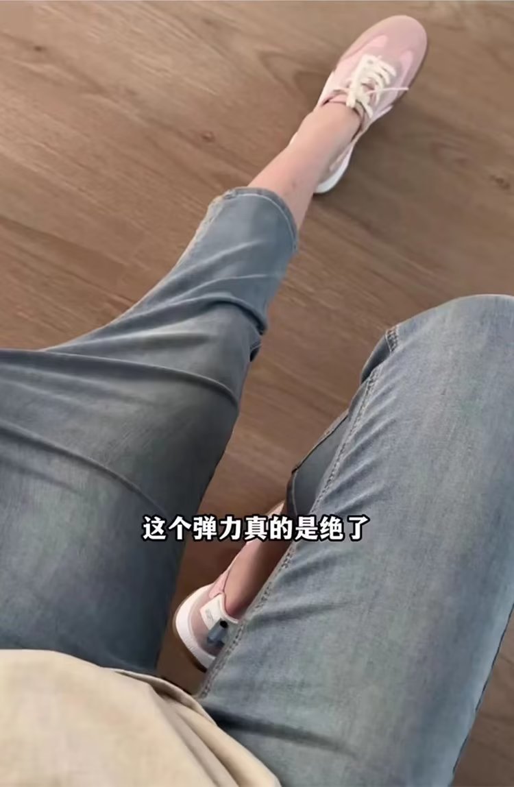 아이스 실크 스트레치 청바지 여성 자른 여름 지방 큰 크기 mm 높은 허리 슬리밍 자른 바지 배 모양의 작은 그림스토어 가기
