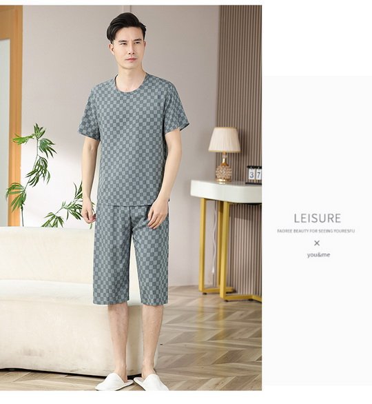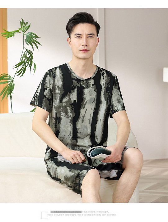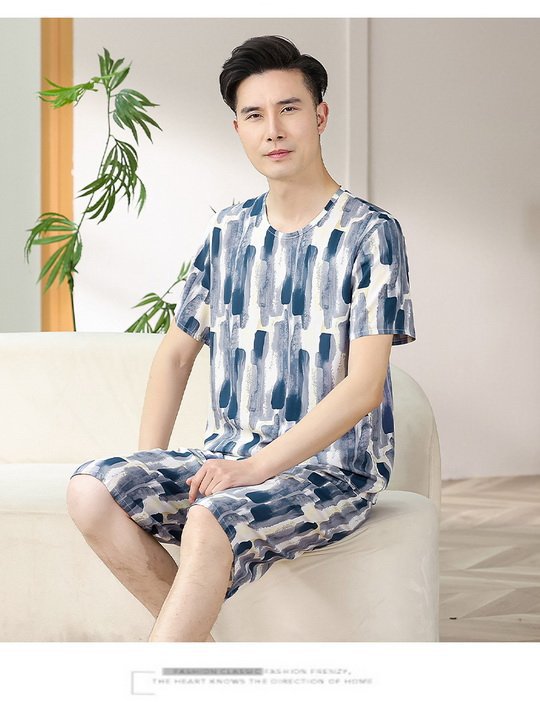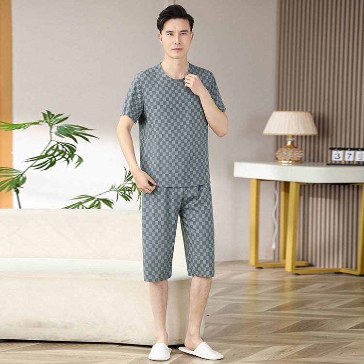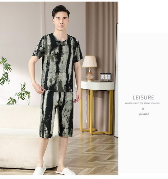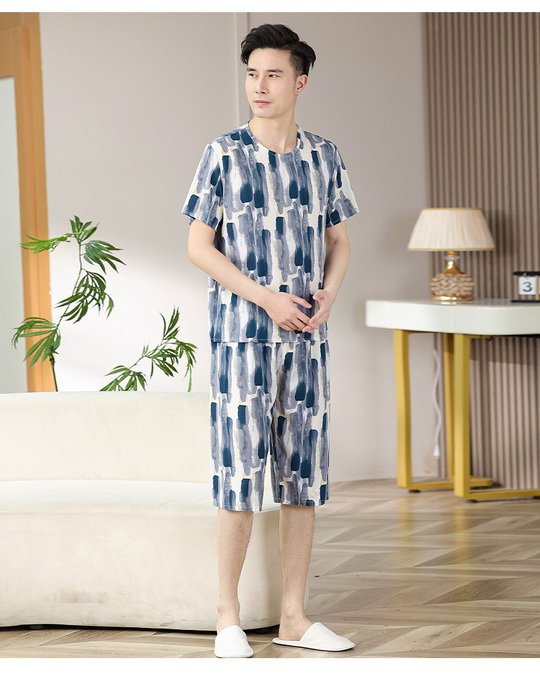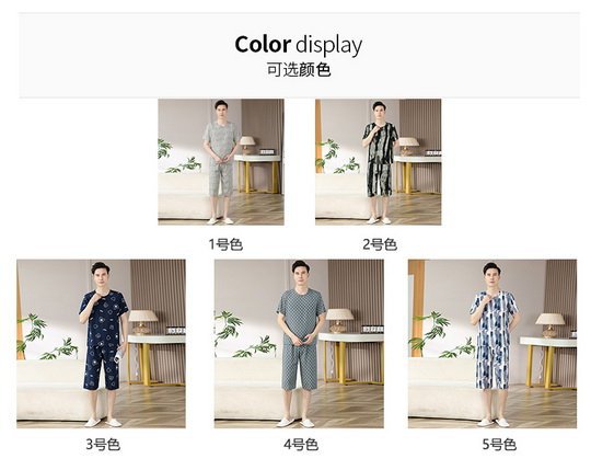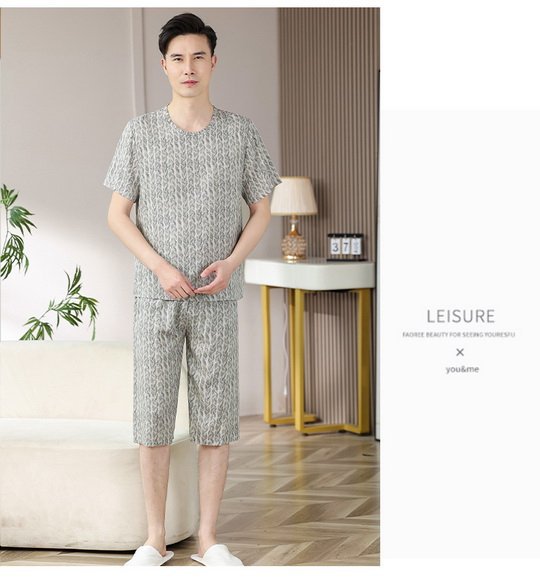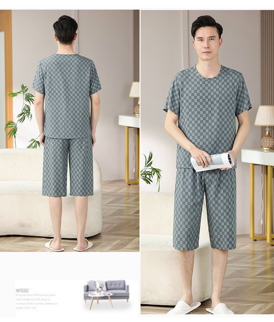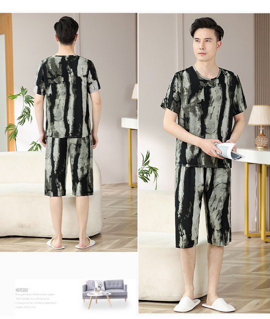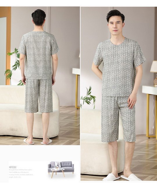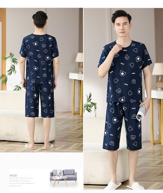 잠옷 남자 여름 코튼 실크 반팔 자른 바지 얇은 여름 남자 플러스 사이즈 반소매 아웃웨어 여름 홈 옷스토어 가기