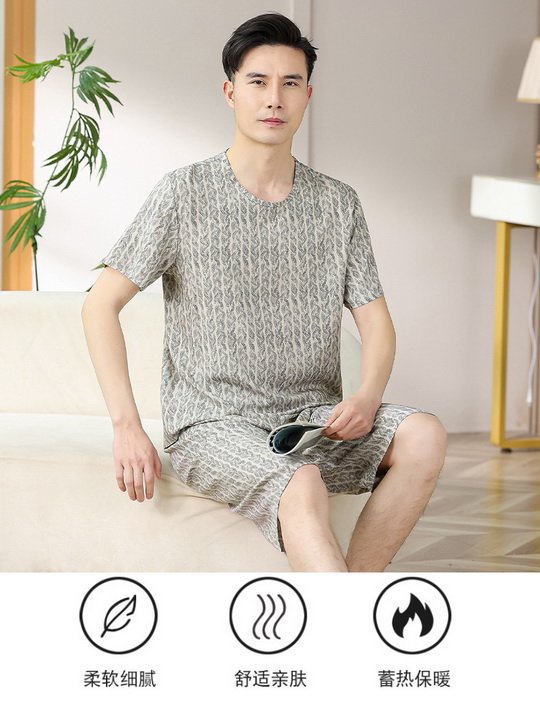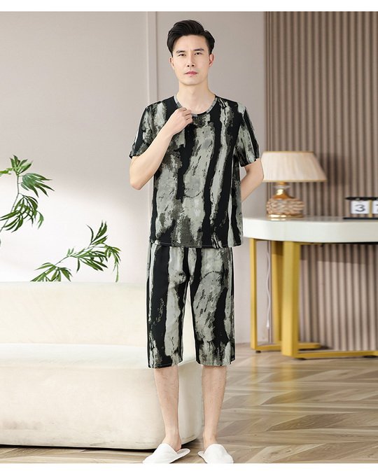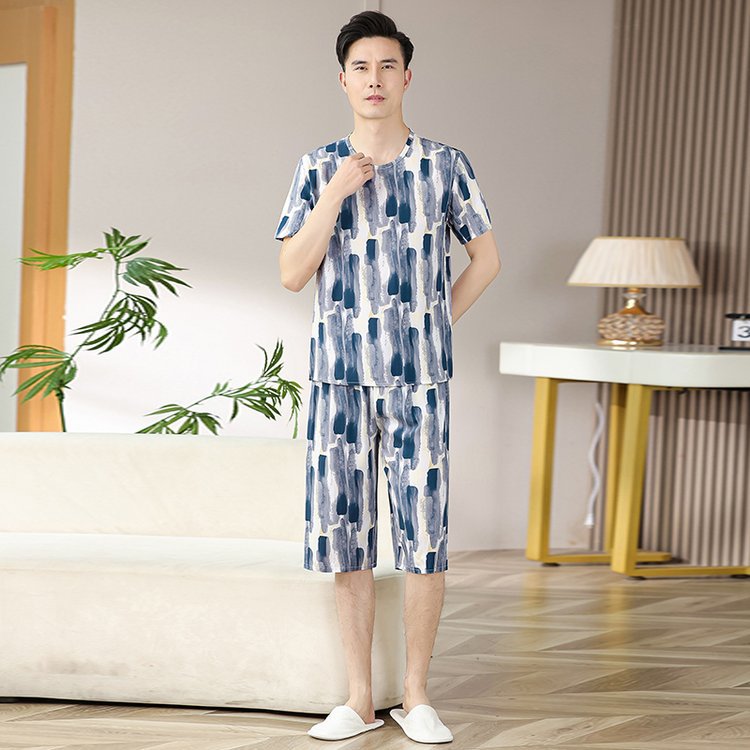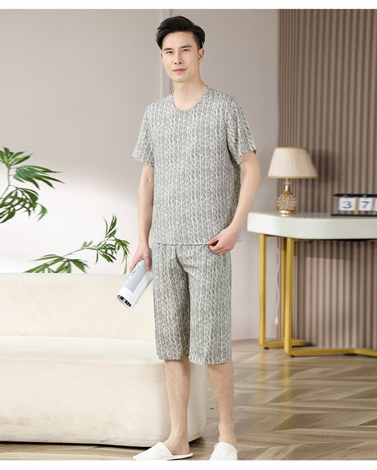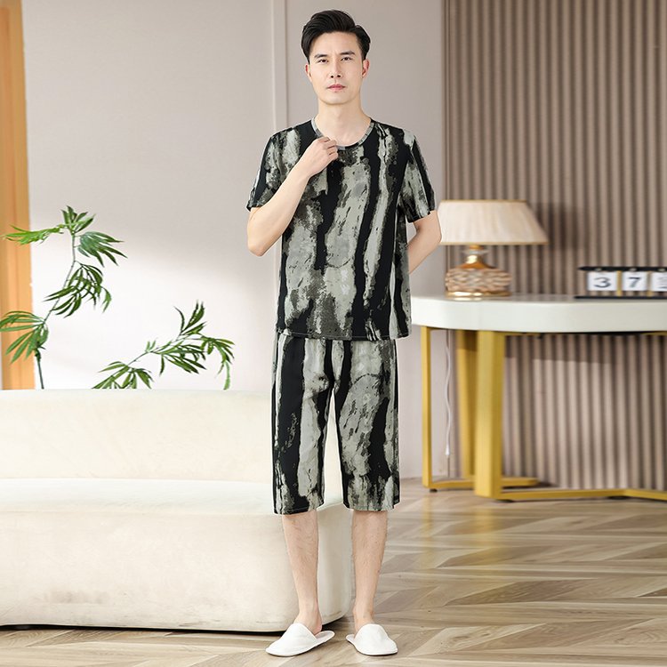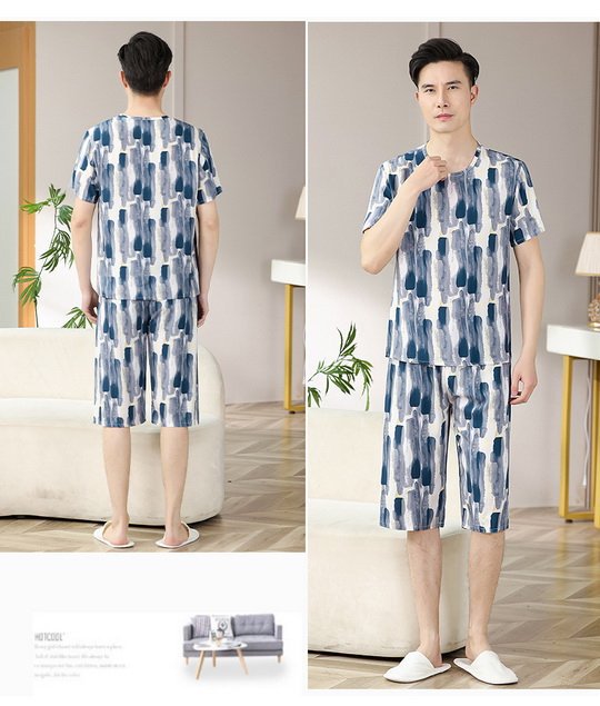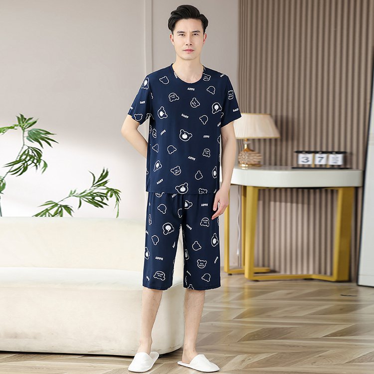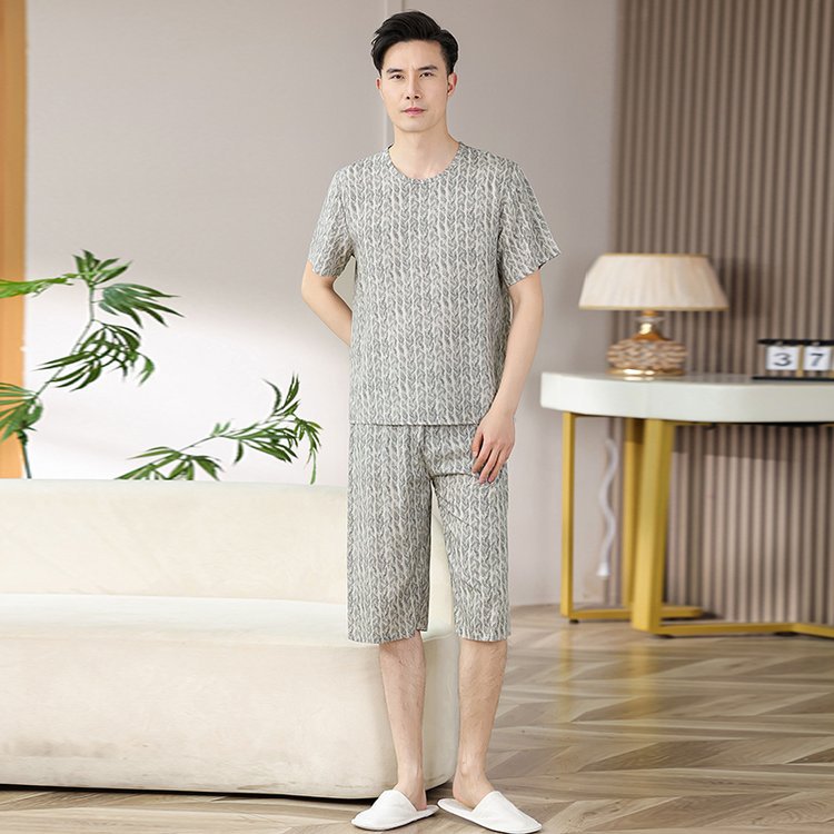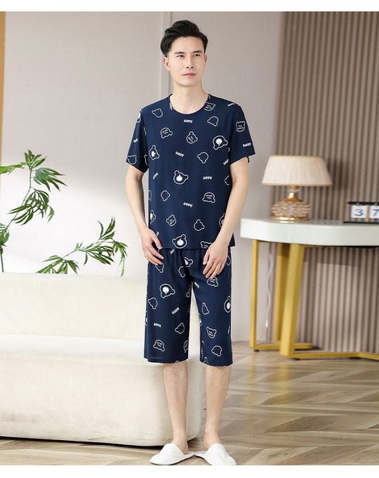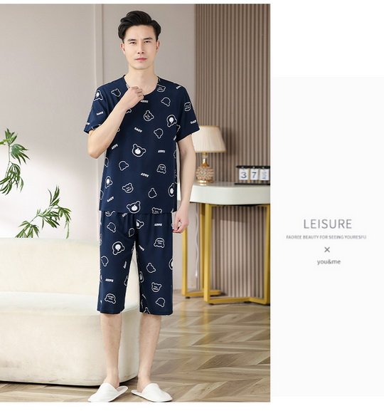 잠옷 남자 여름 코튼 실크 반팔 자른 바지 얇은 여름 남자 플러스 사이즈 반소매 아웃웨어 여름 홈 옷